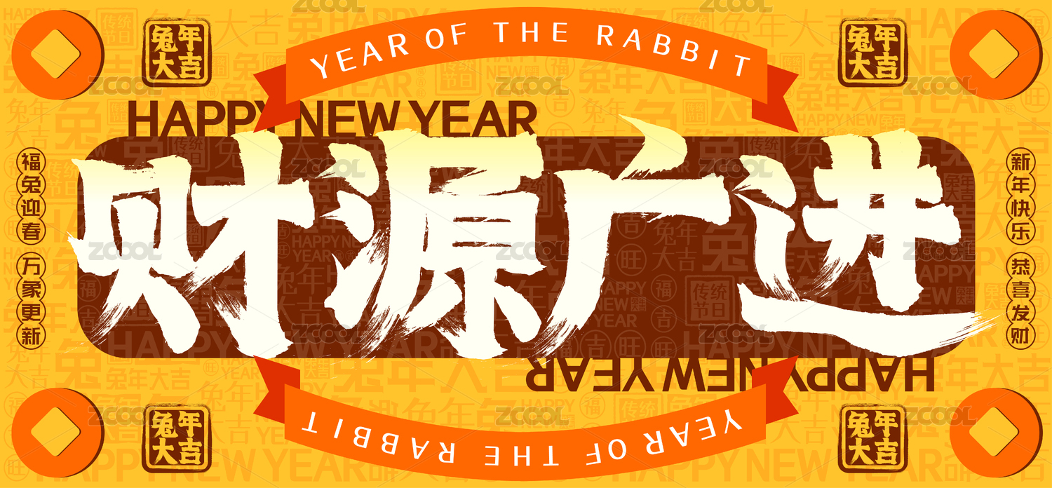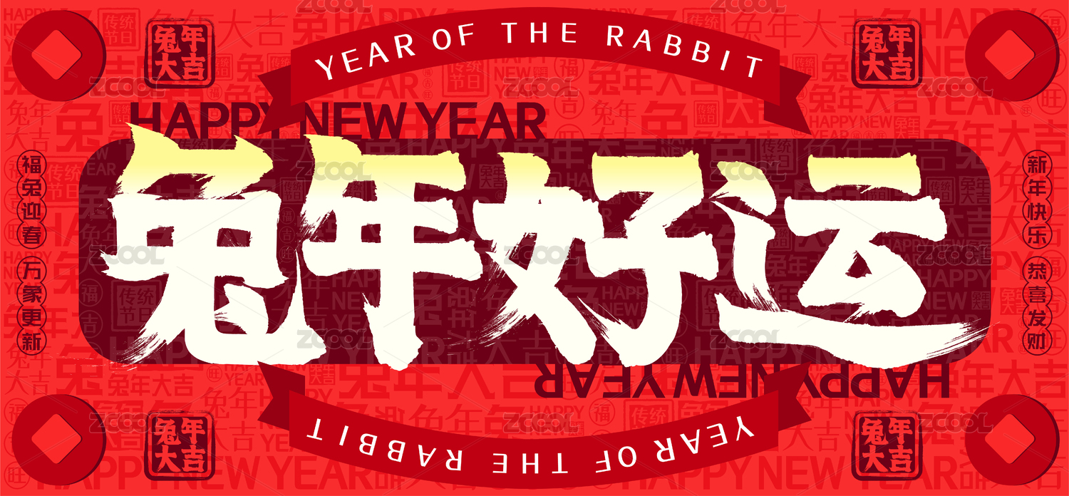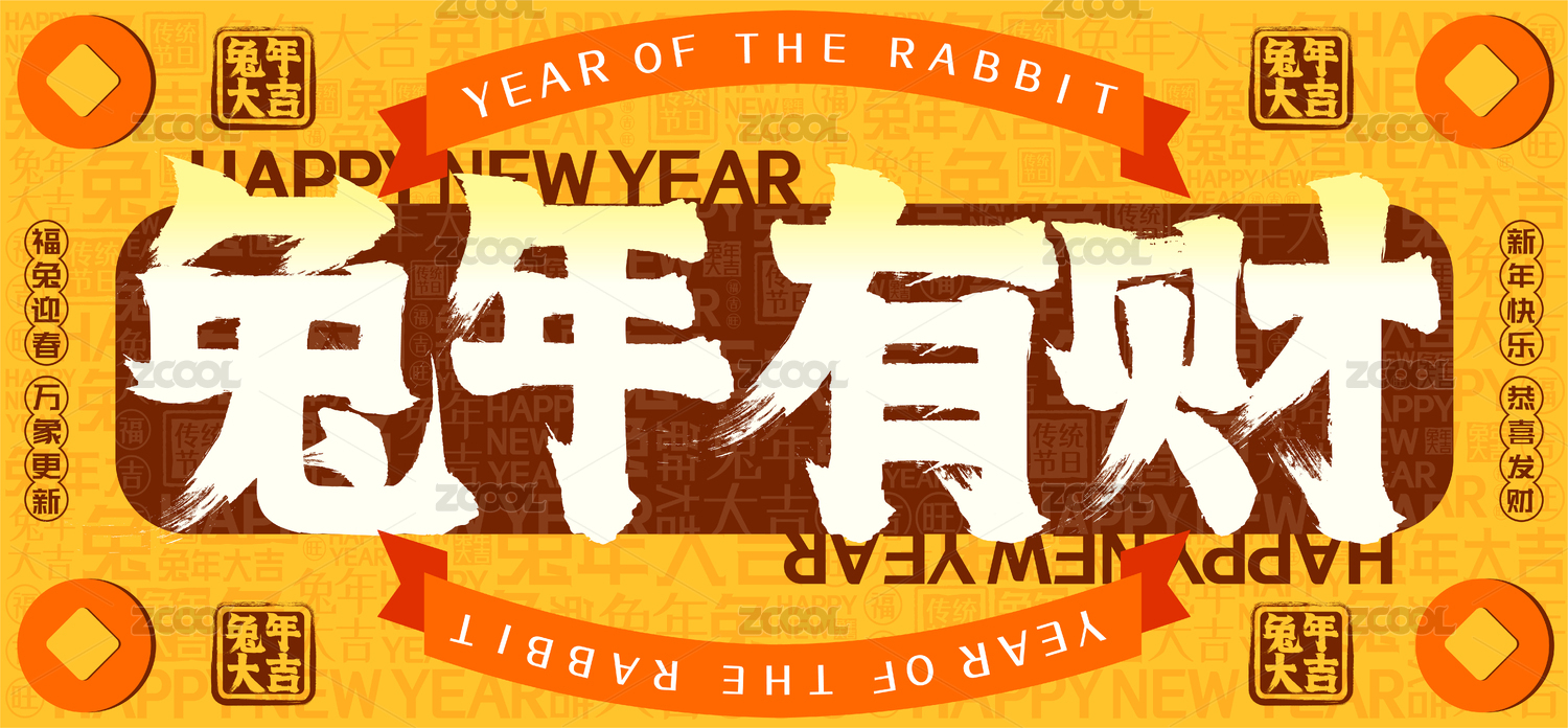 金兔贺岁国潮铜钱文字装饰春节新年书法字