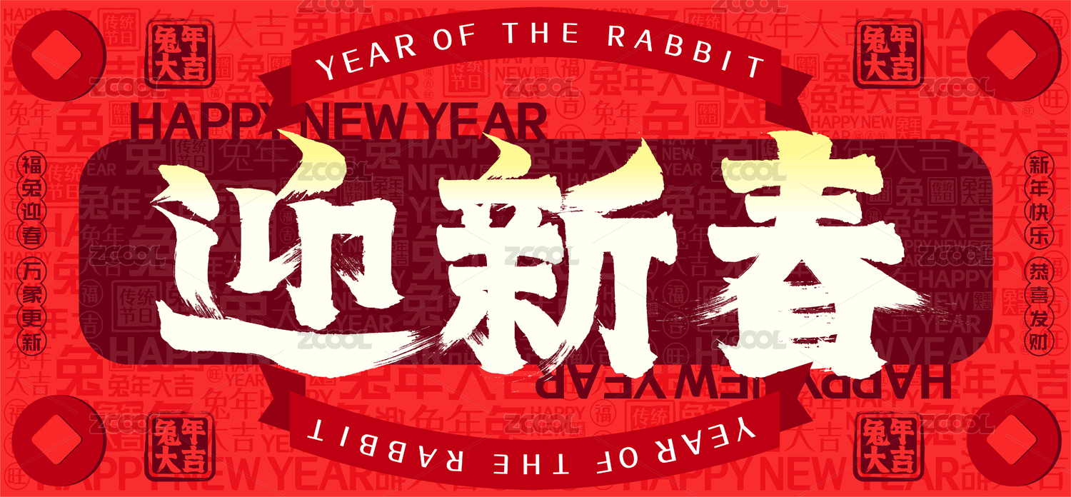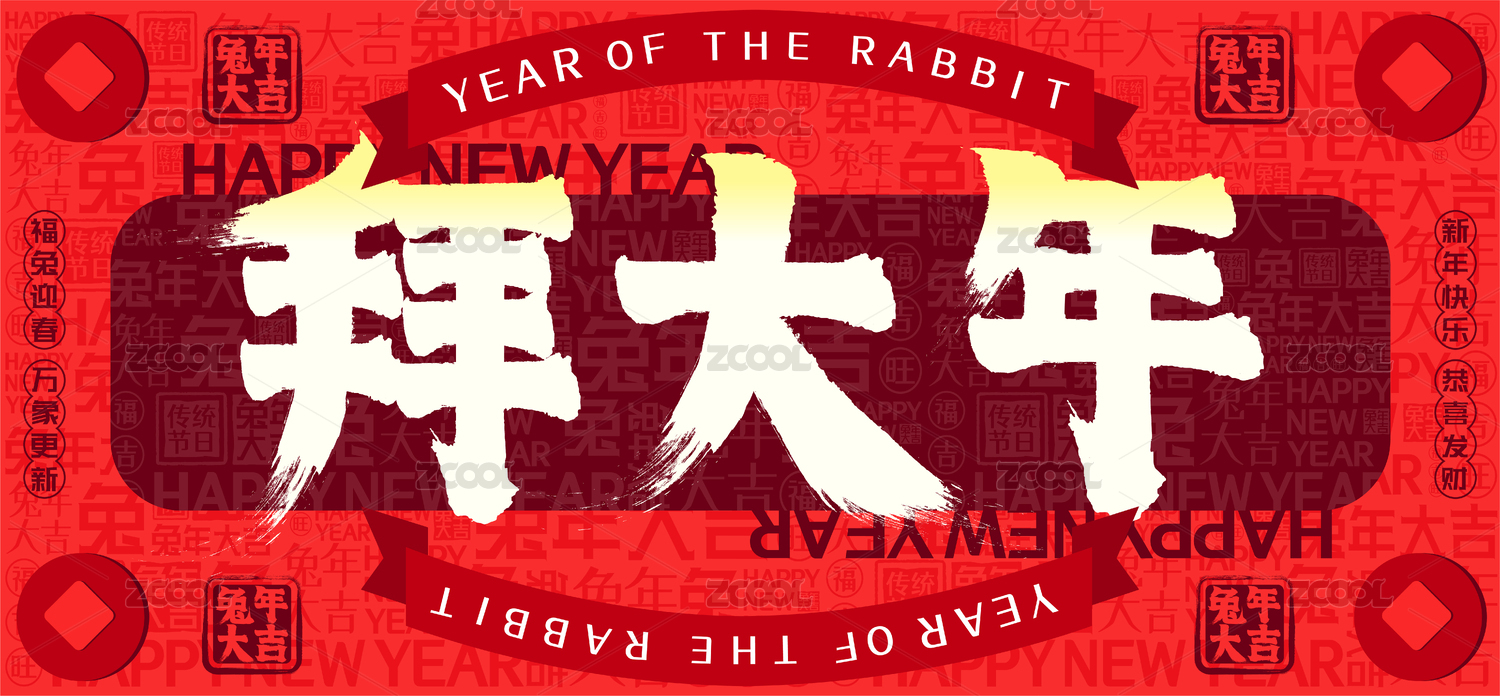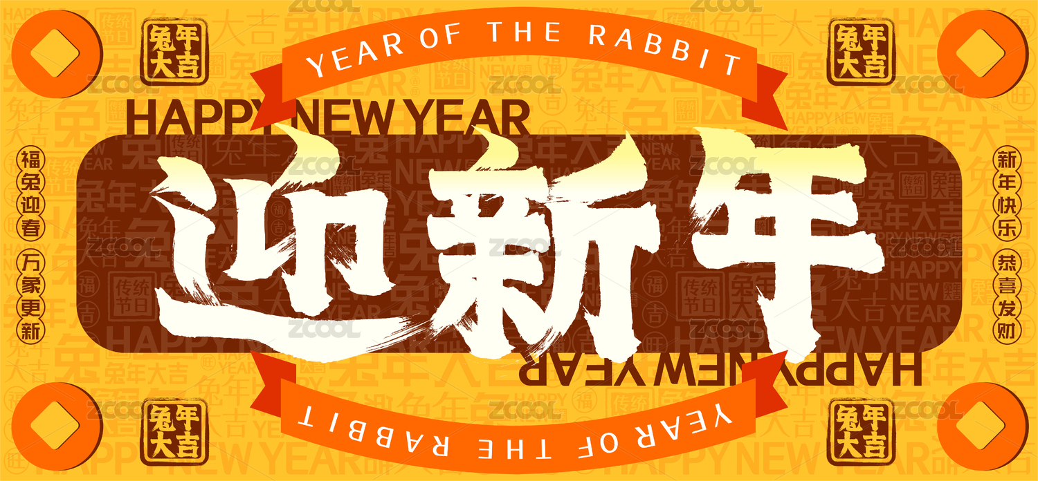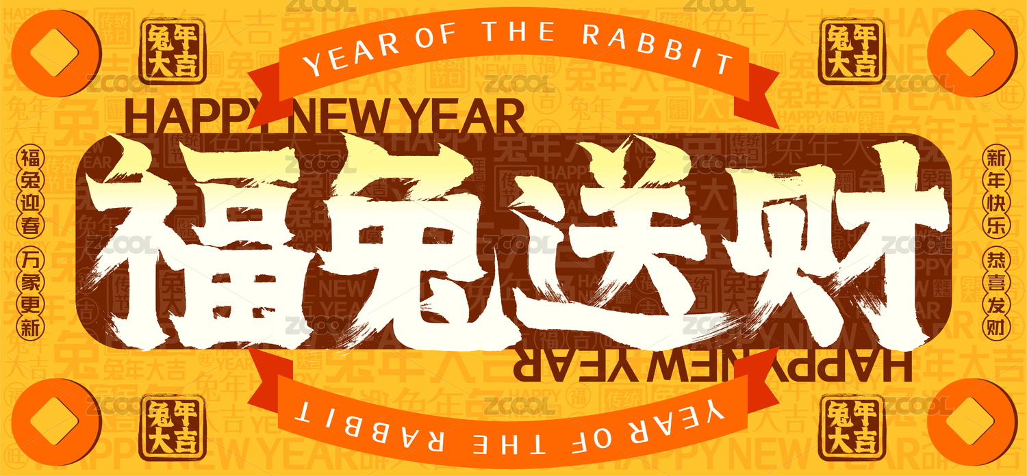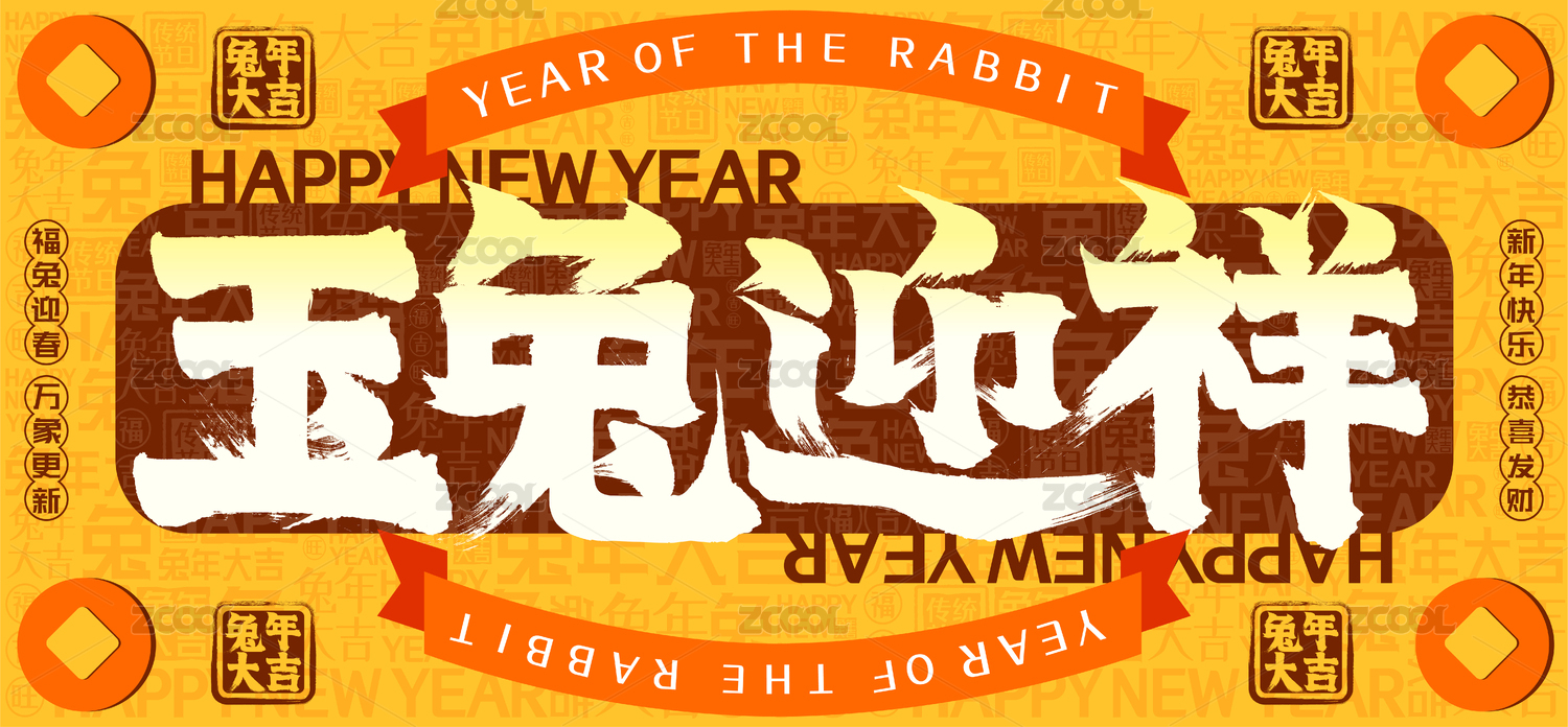 玉兔迎祥国潮铜钱文字装饰春节新年书法字