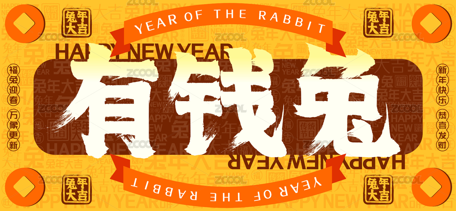 有钱兔国潮铜钱文字装饰春节新年书法字