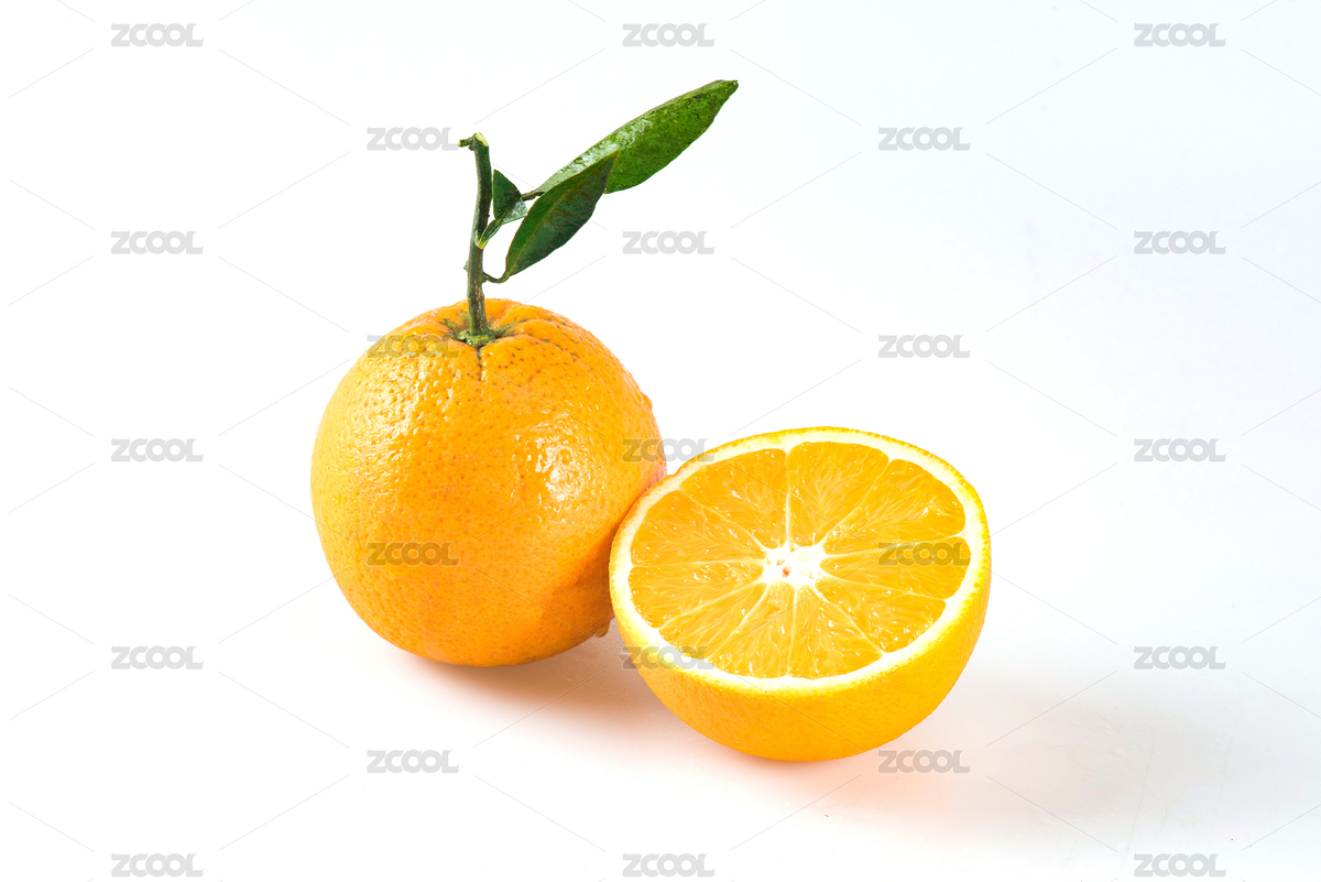 新鲜切开的橙子水果白底