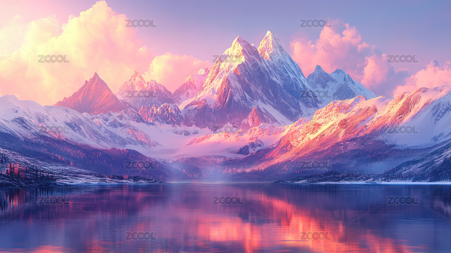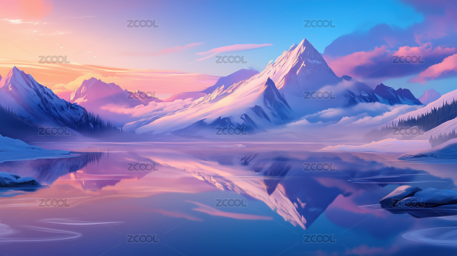 雪山,湖泊,冰雪,山峰,宁静,风景,倒影,HDR,远山,冬季