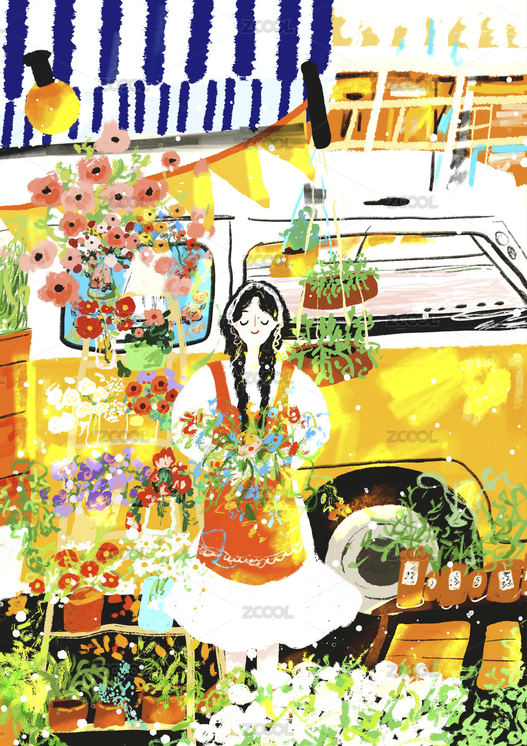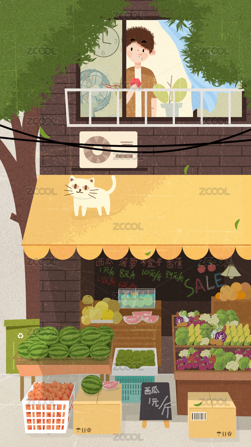 夏天,回忆,水果铺,女孩,治愈,温馨,清新,唯美,水果,金色