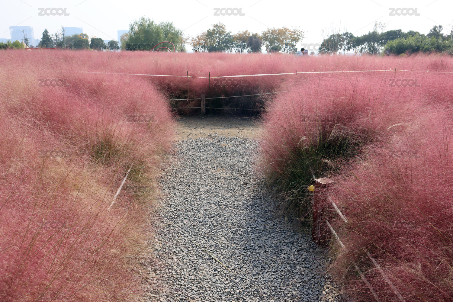 开放式公园植物栽种区内粉红色的粉黛子草