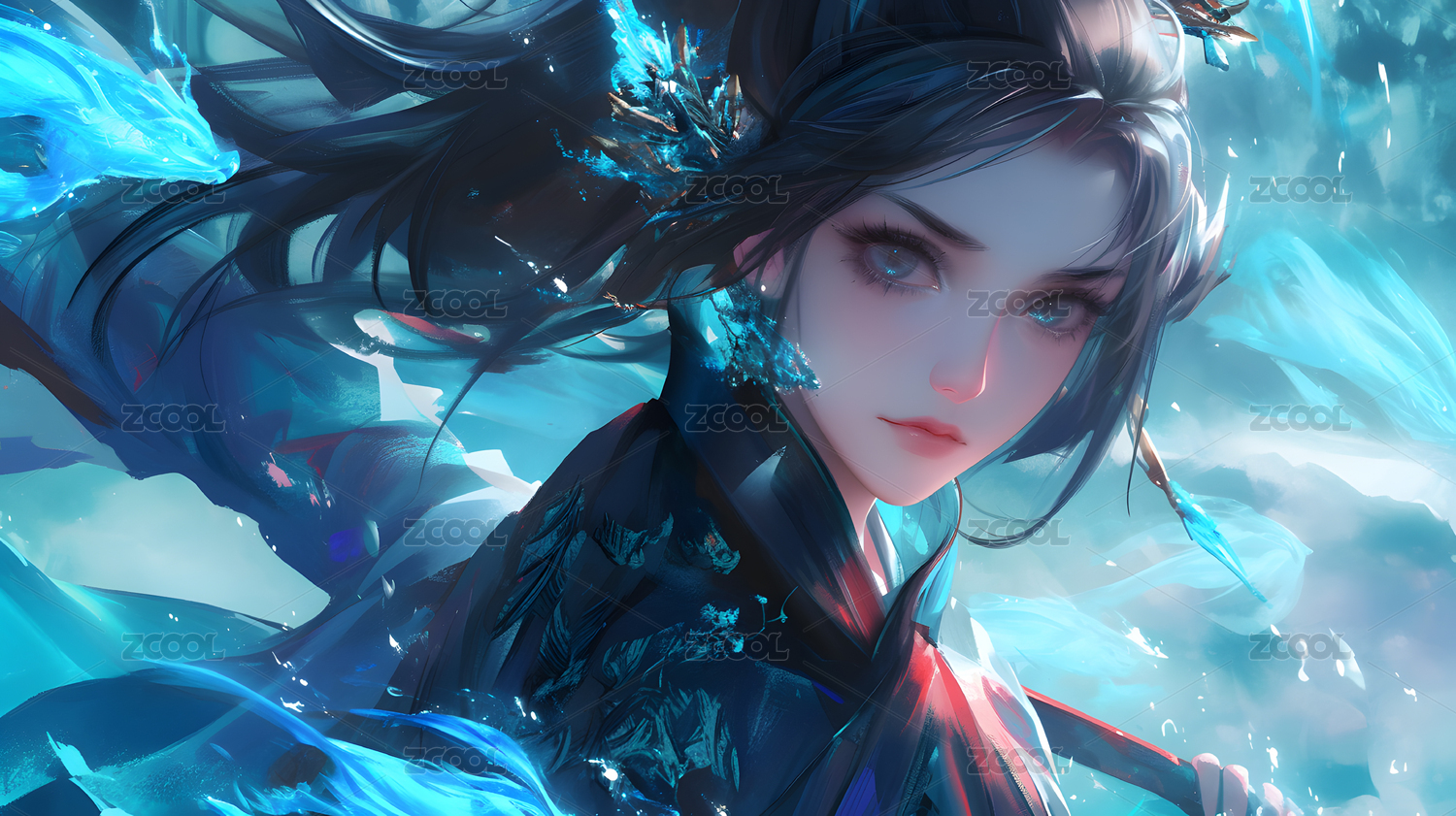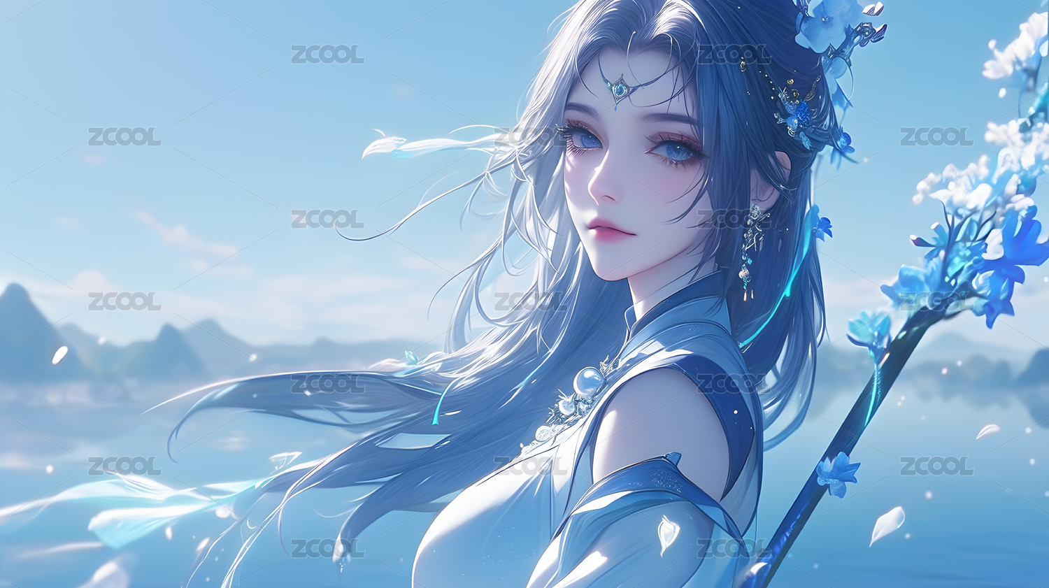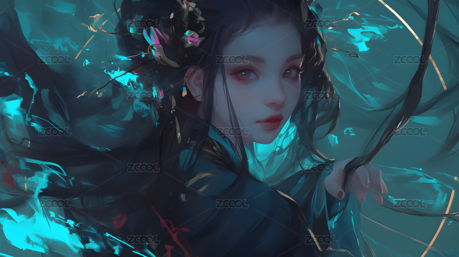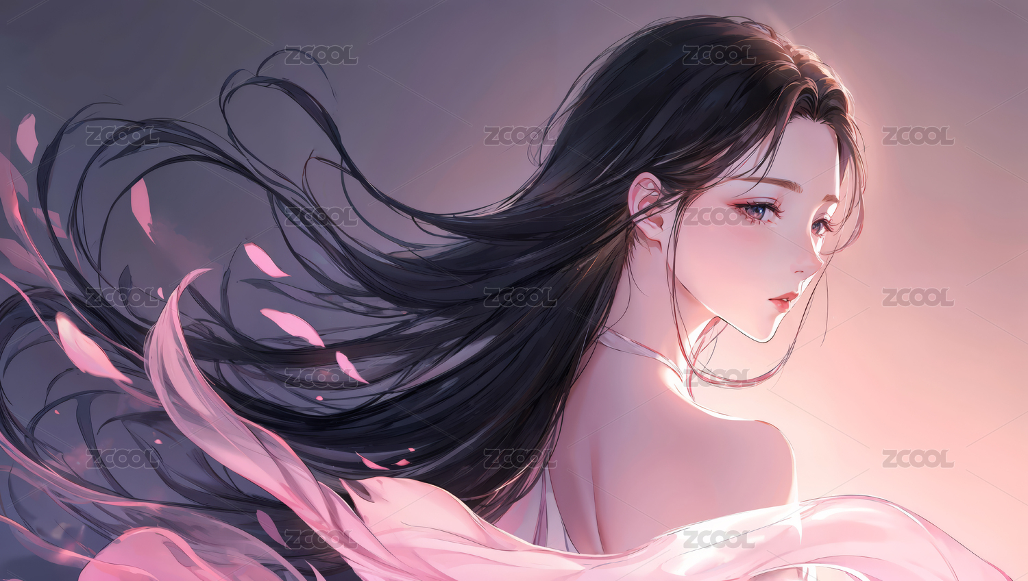 国漫风披肩古风长发帅哥卡通插画原画人物