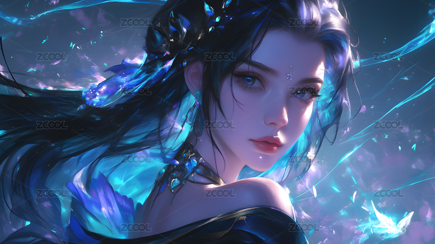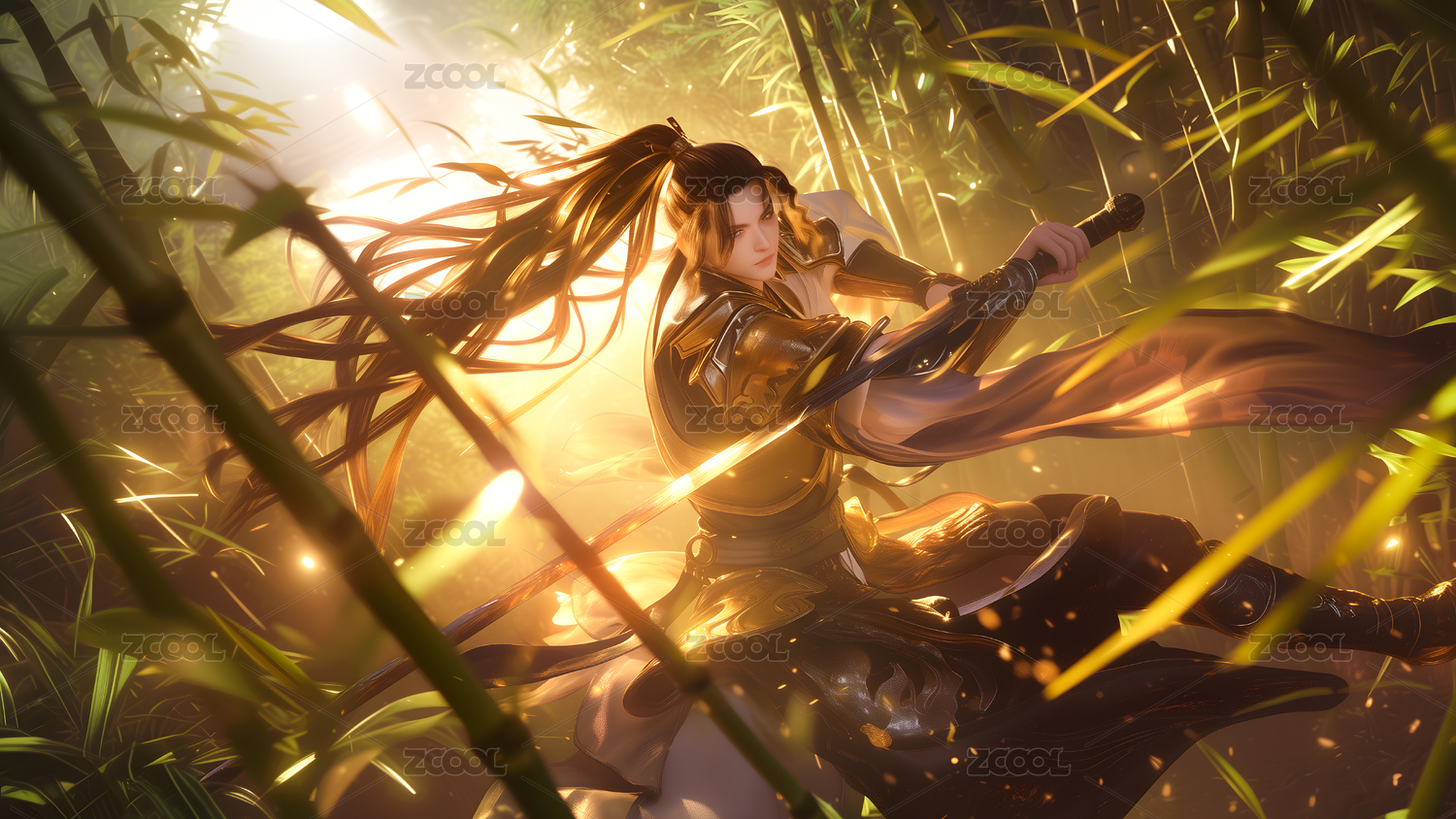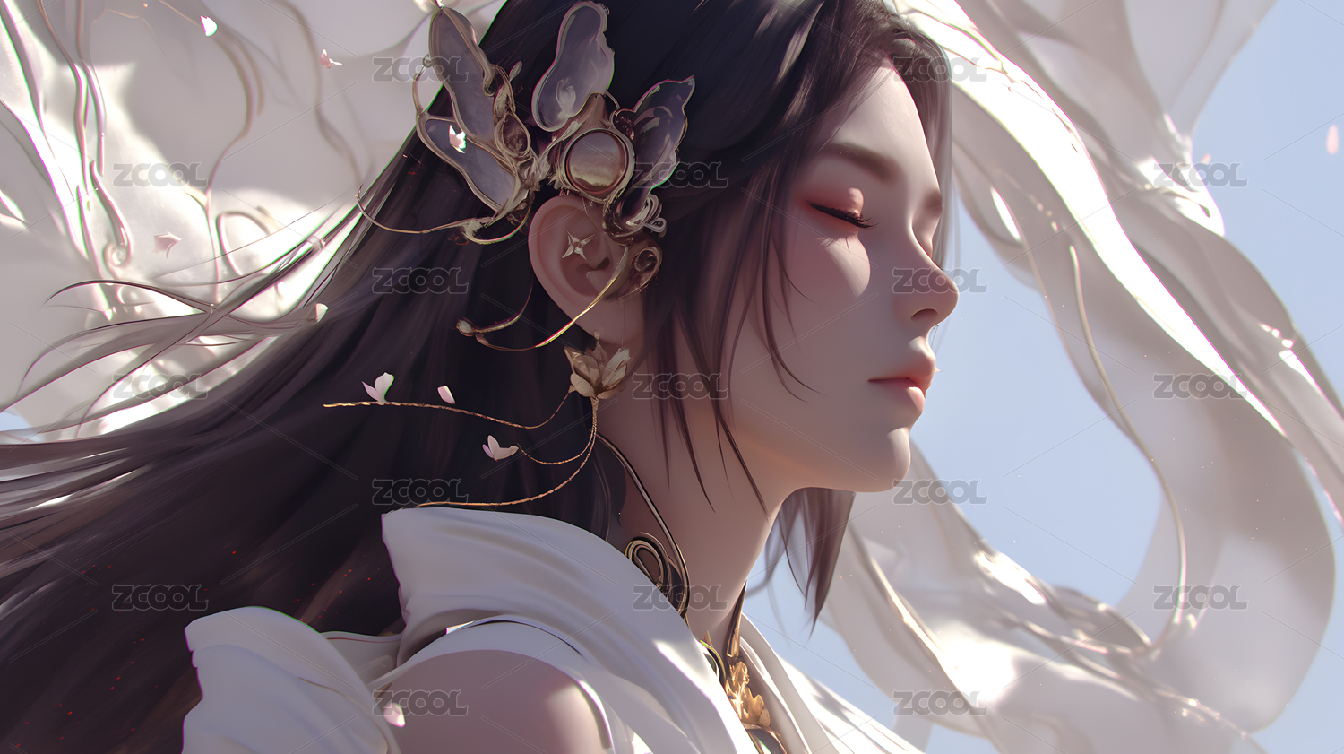 国漫风披肩古风长发帅哥卡通插画原画人物