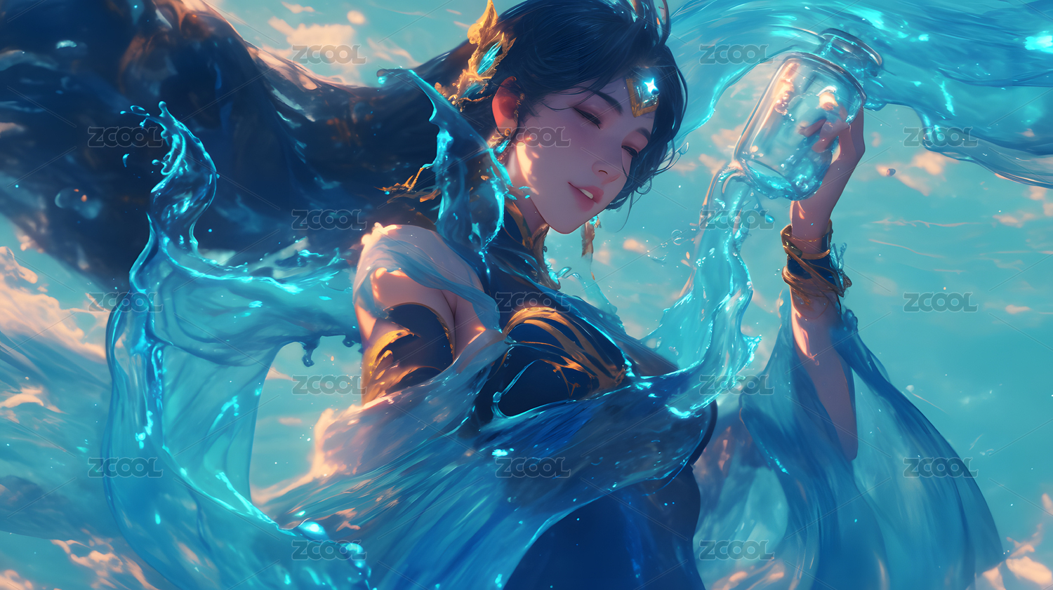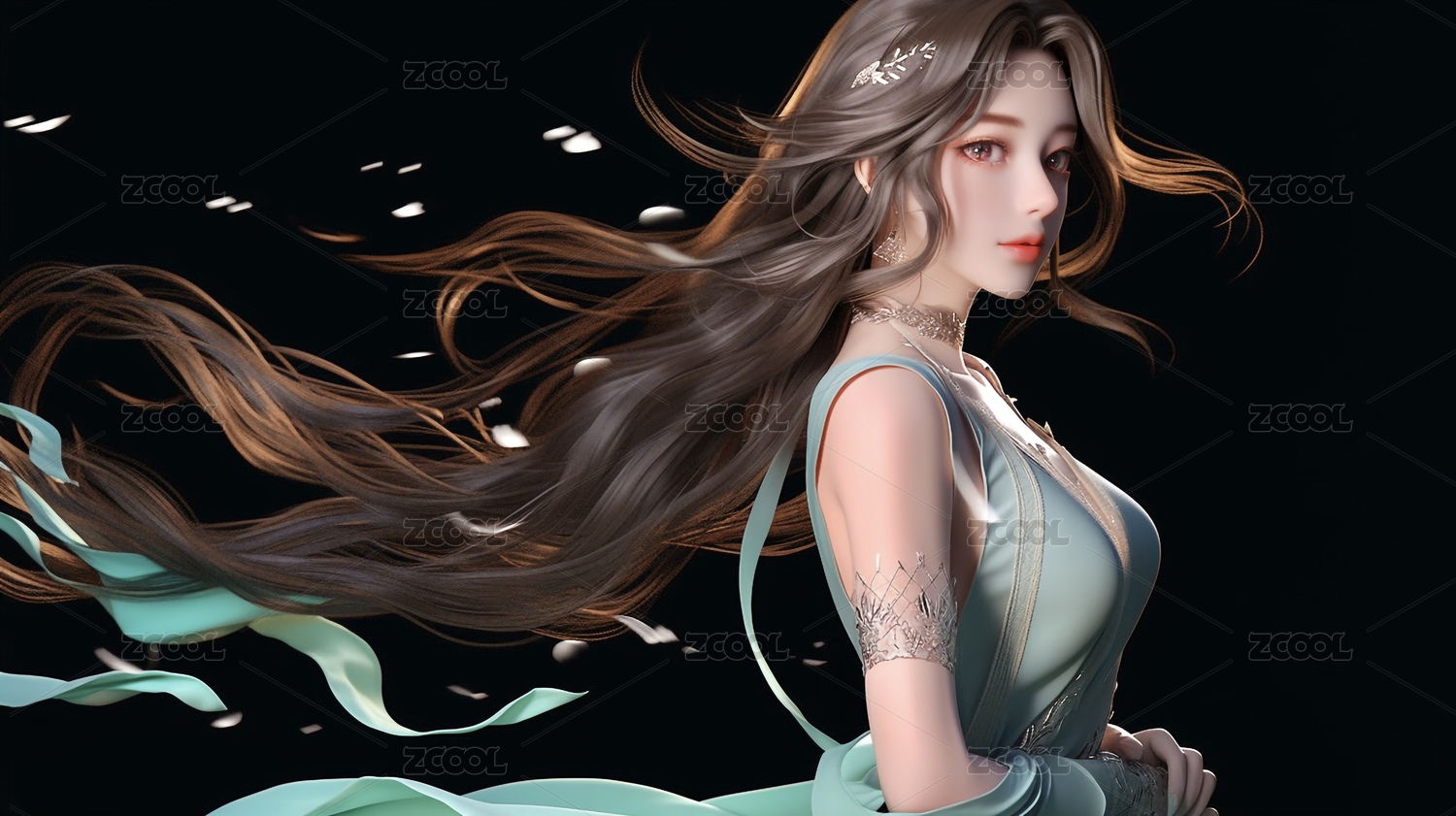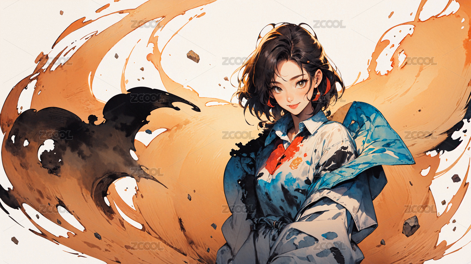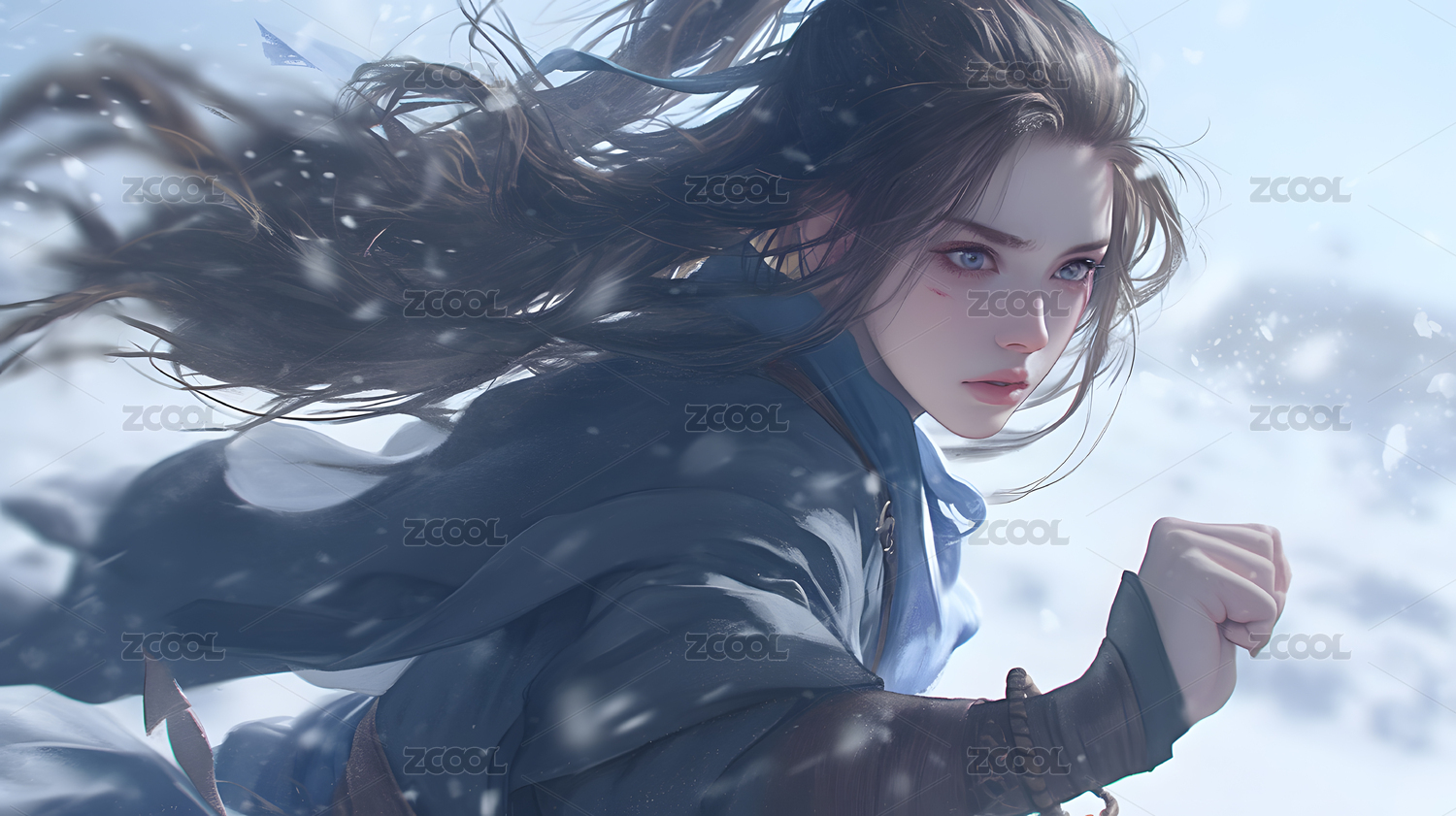 国漫风披肩古风长发帅哥卡通插画原画人物