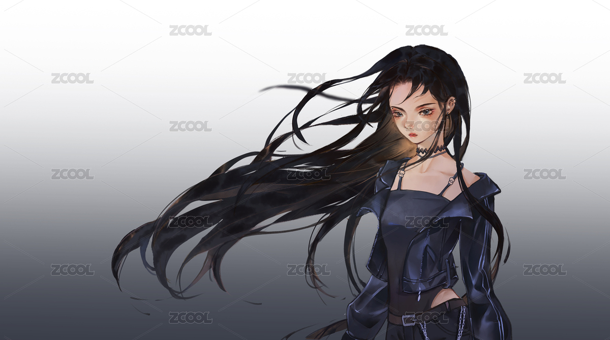 现代,少女,皮衣,机车,长发,深色,叛逆,暗黑