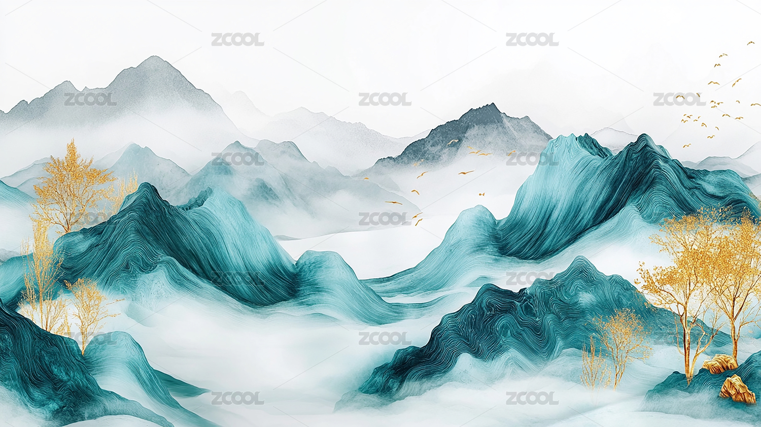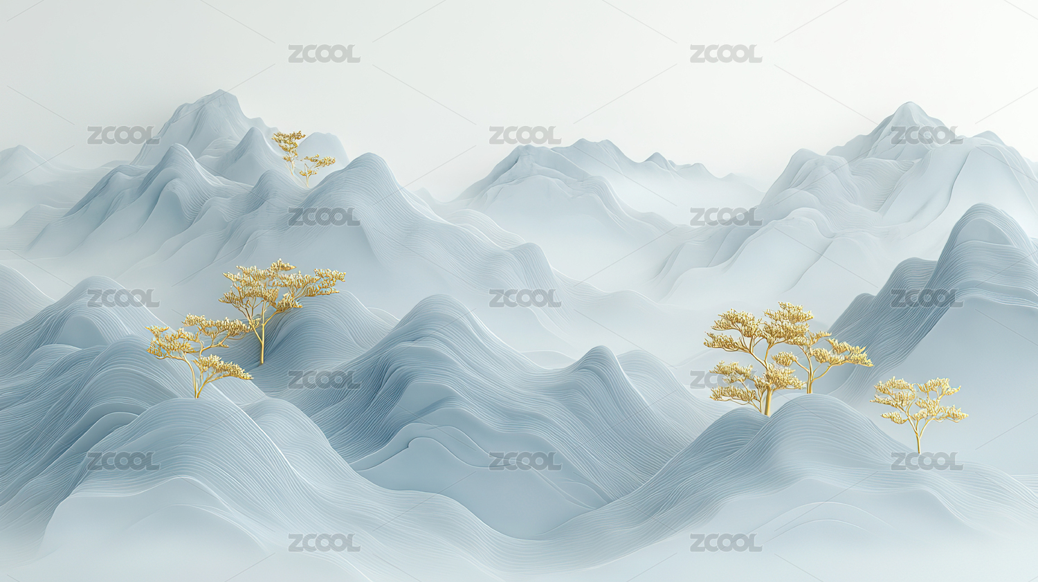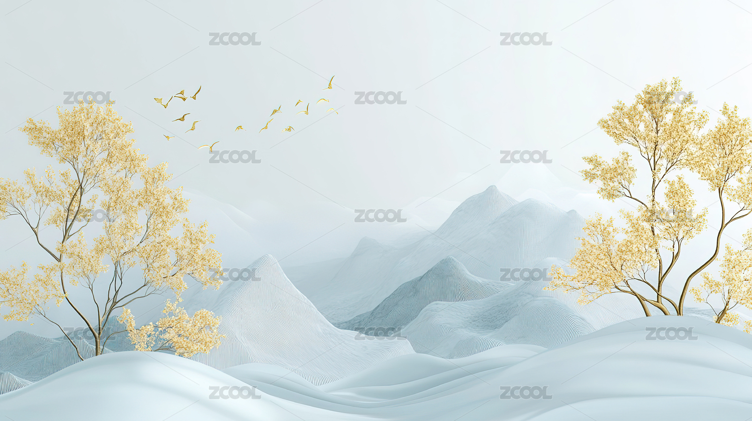 抽象,艺术,壁纸,现代,简约,背景图,金色,水彩,山峦,树木