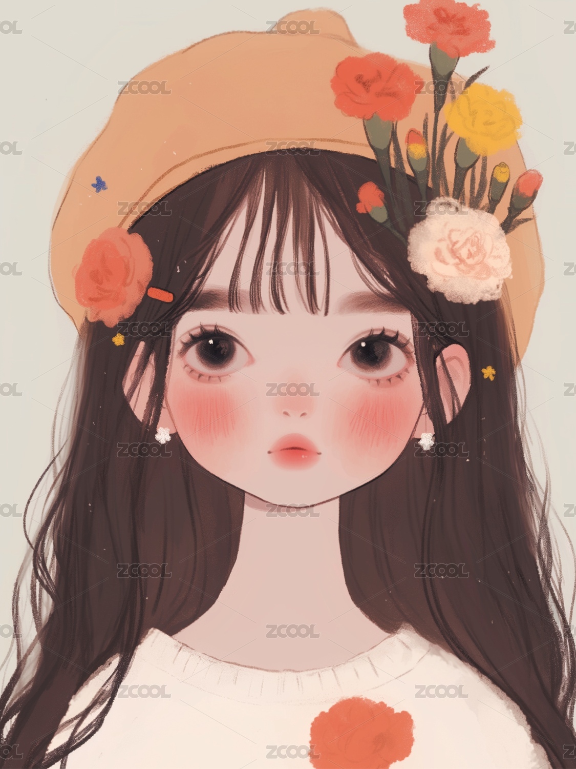 美女,少女,水彩,帽子,冬季,忧郁,美丽,远方,飘渺,眼神