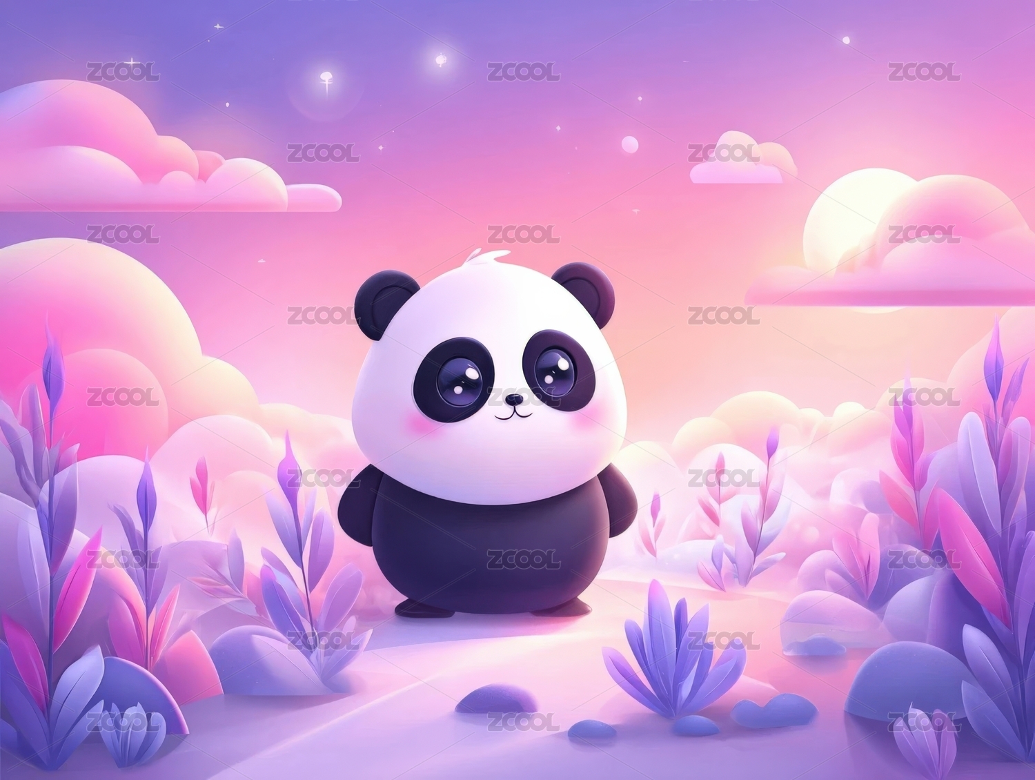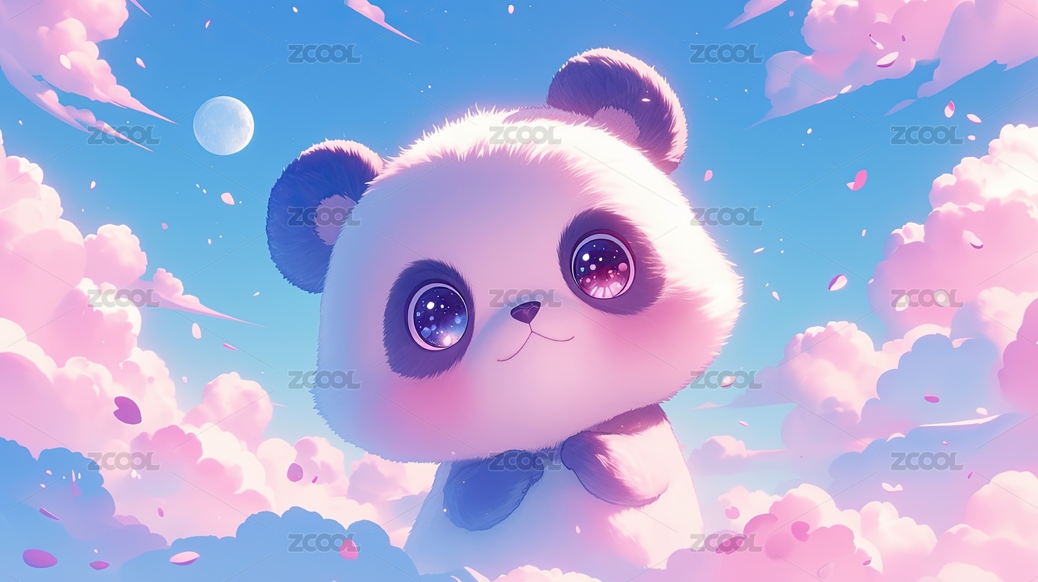 熊猫,云朵,星星,月亮,可爱,卡通,萌宠,3D渲染,童趣,梦幻