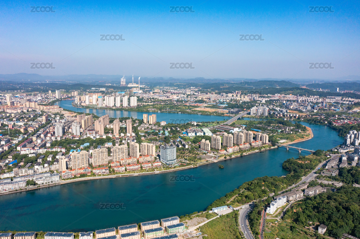 航拍中国湖南省郴州市资兴市城市景观
