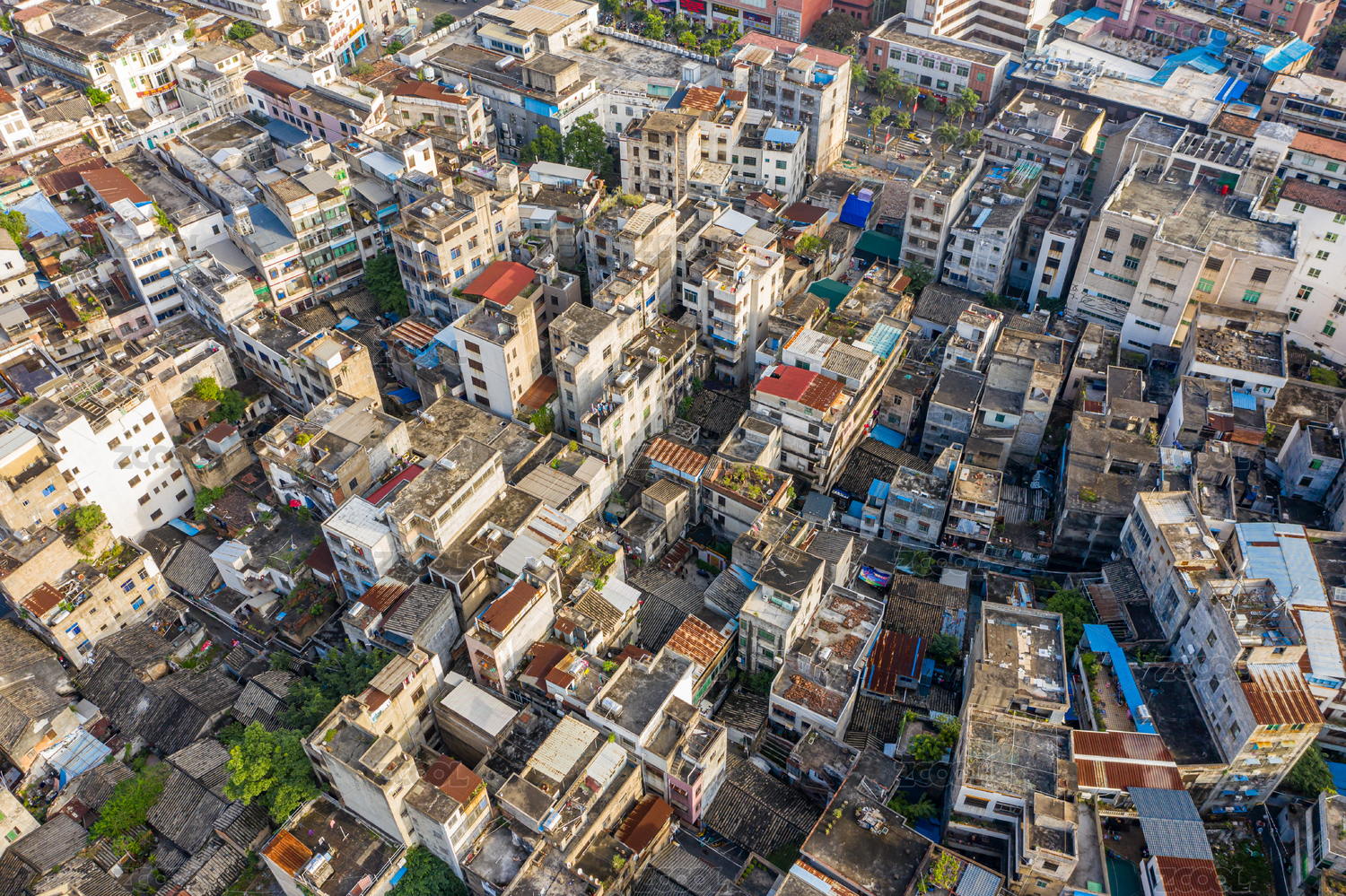 航拍海南海口骑楼老街街区历史文化建筑群落