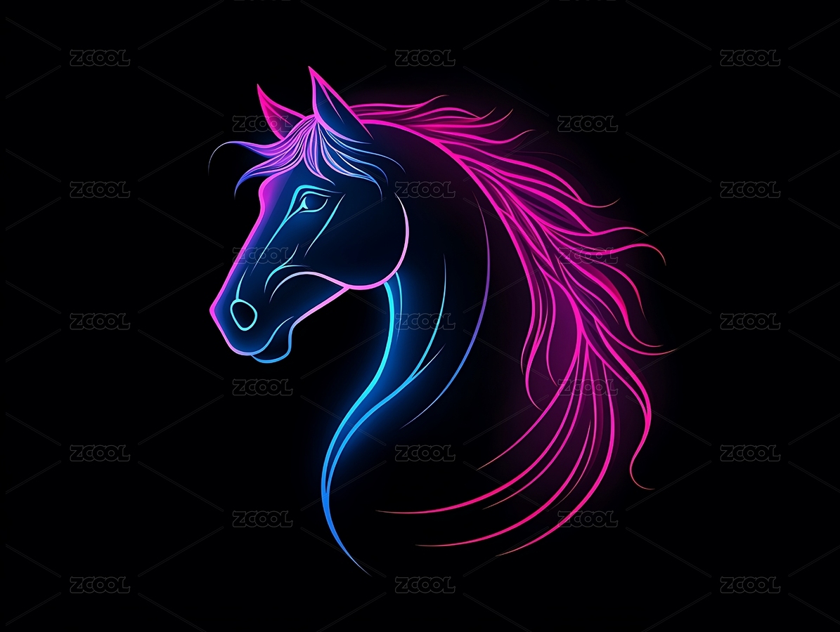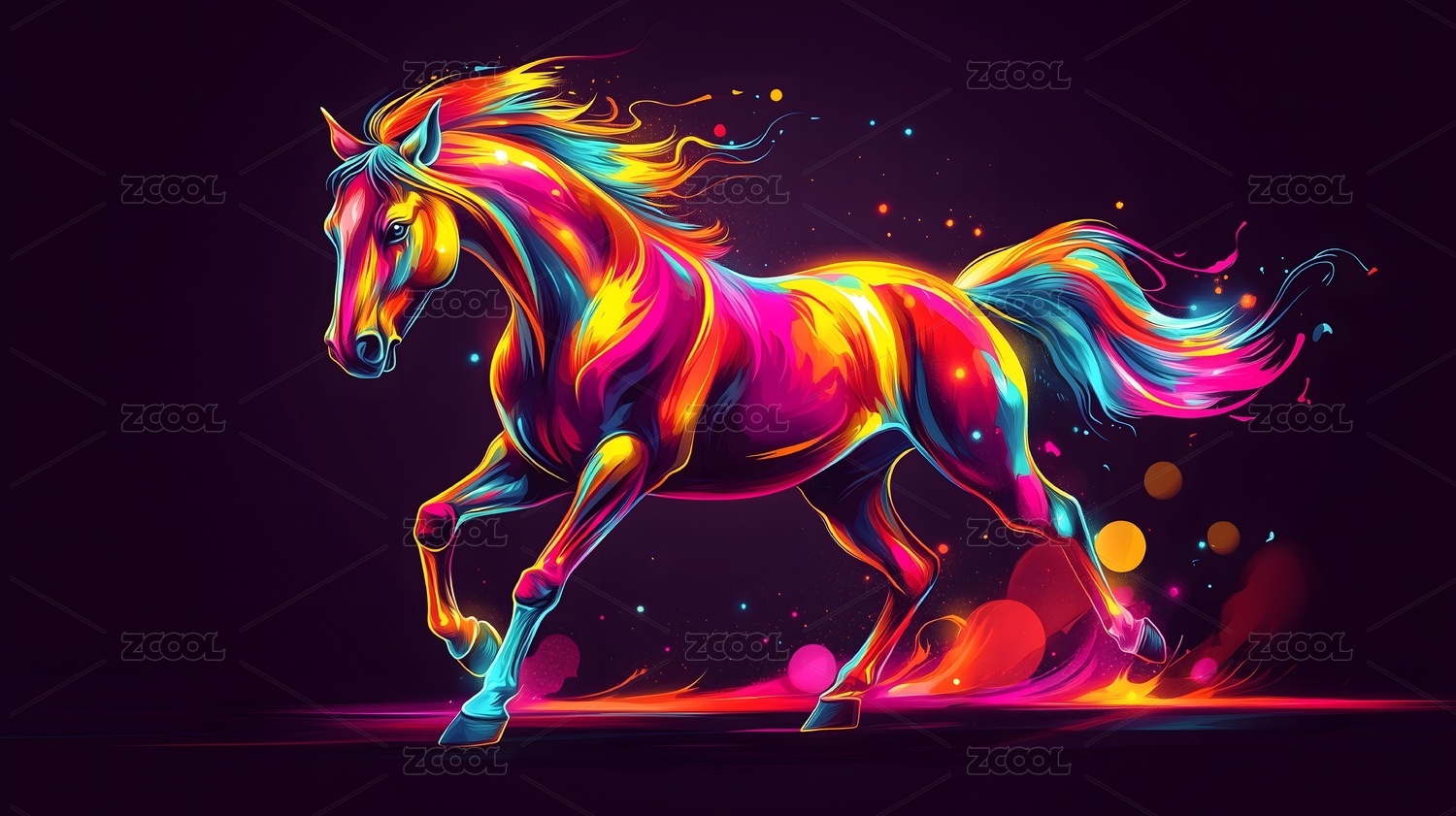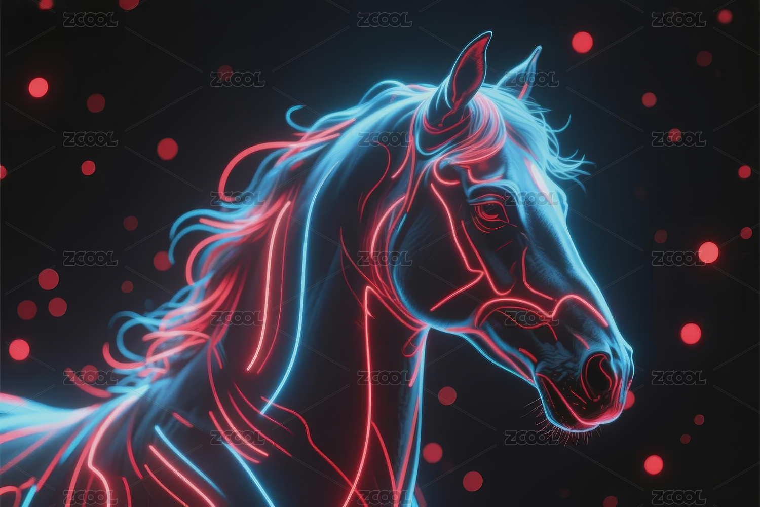 霓虹灯光下的奔跑的马匹图片具有艺术感