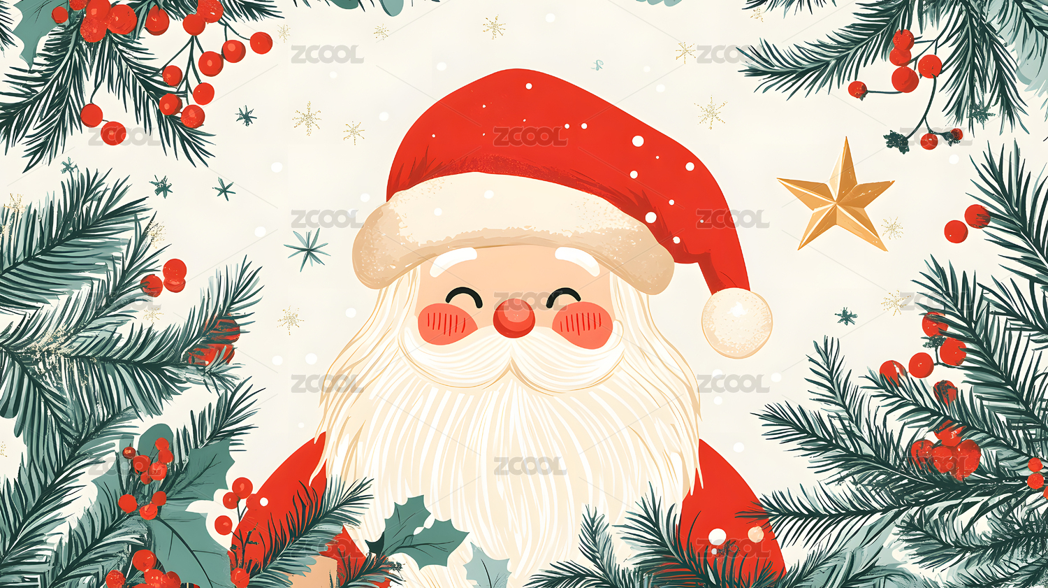 圣诞节装饰背景圣诞老人圣诞树冬季雪花插画