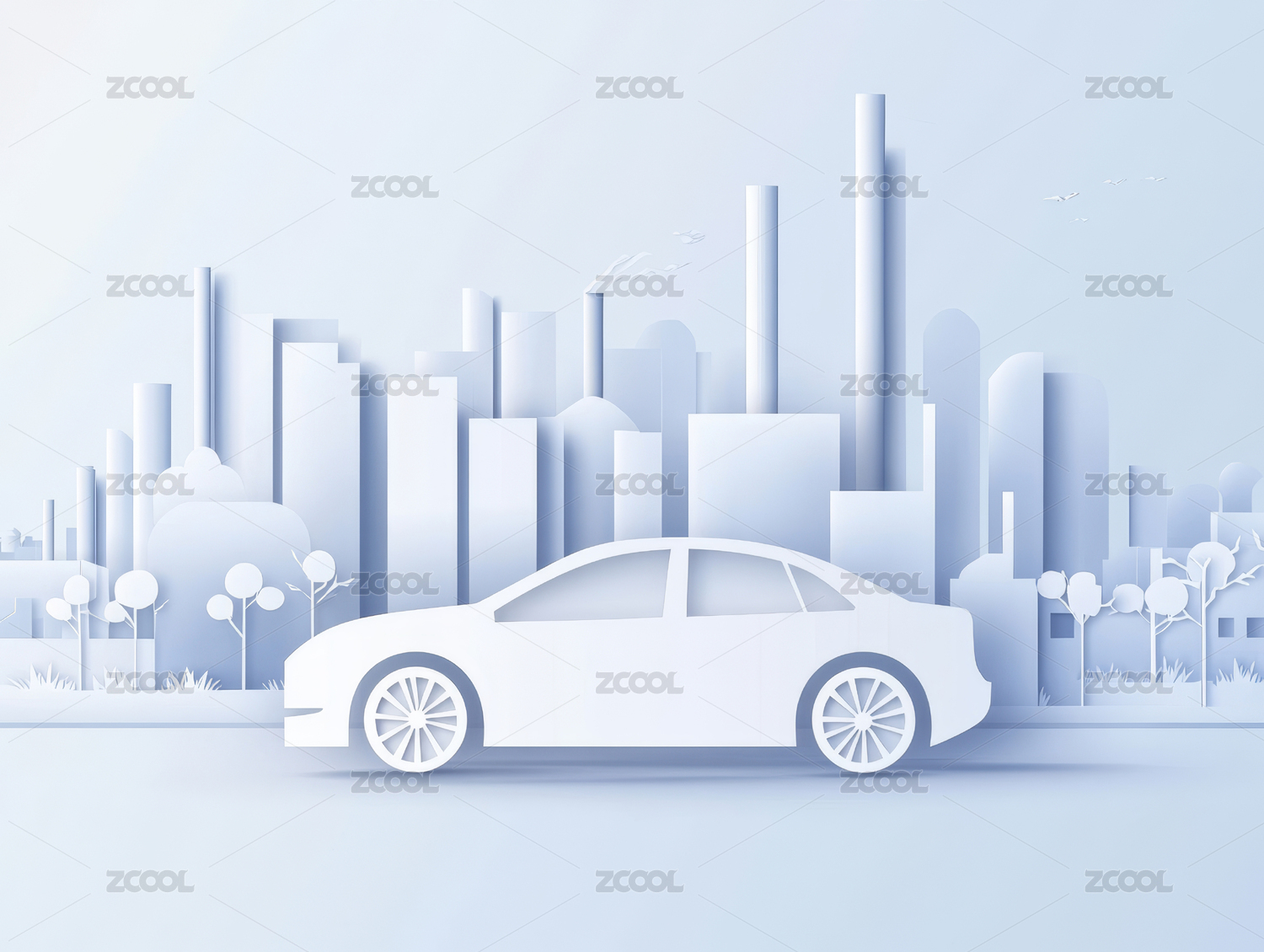 汽车工厂剪纸插画