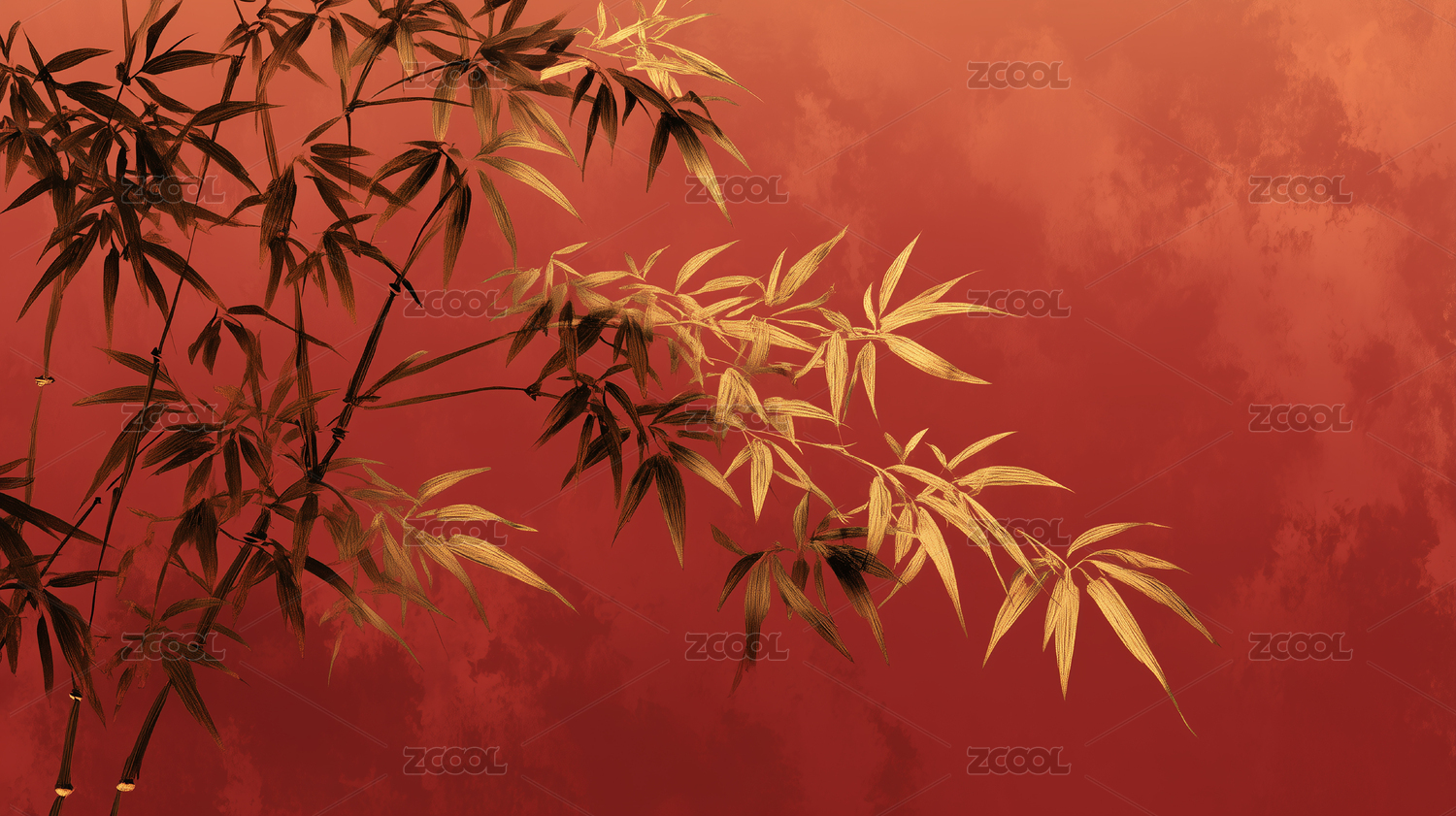 竹子,金色,红色,背景,纹理,植物,枝叶,中国风,水墨,意境