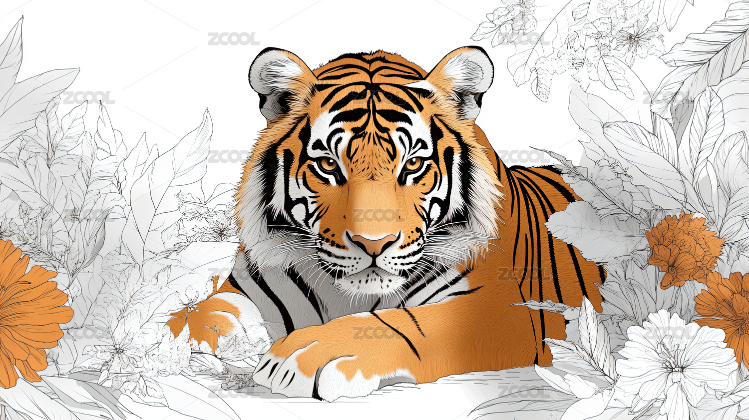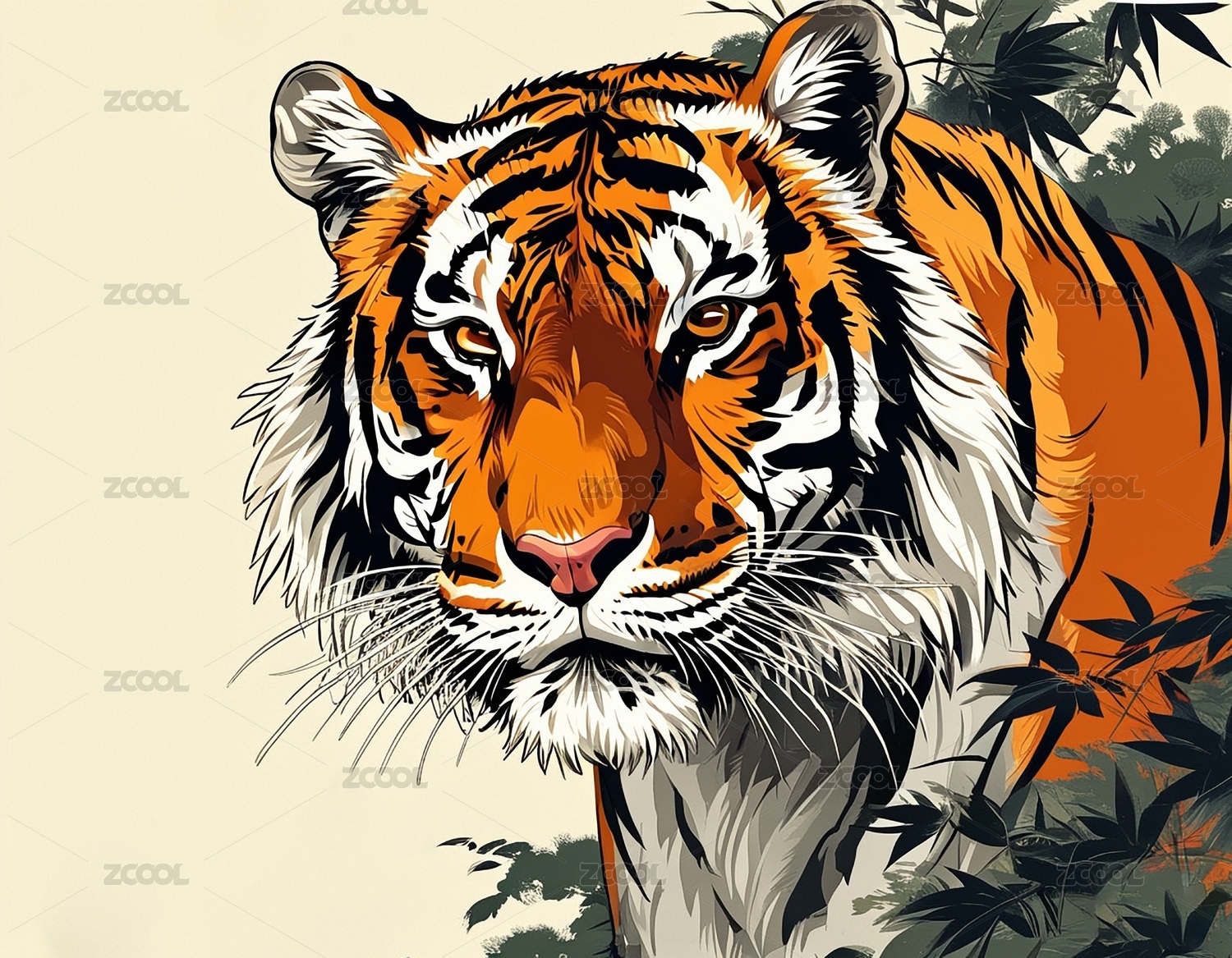 老虎,艺术,装饰画,背景,创意,手绘风,卡通,风格,国风,威猛