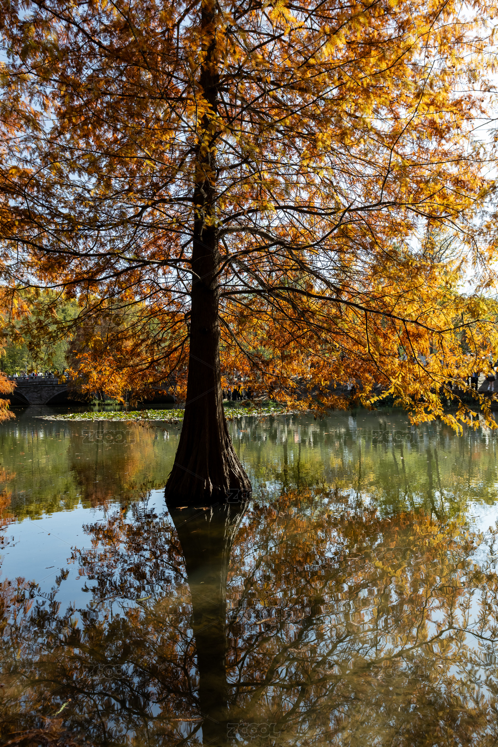 落羽杉,杉树,树,秋天,湖,倒影,秋色,植物,竖构图,光影