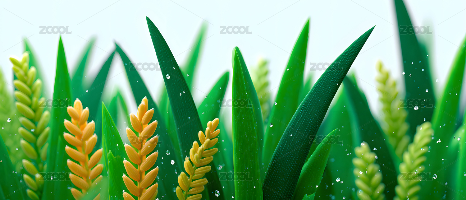 插画,中国风,中式,仰视,绿色,小麦,谷,麦穗,节气,时节