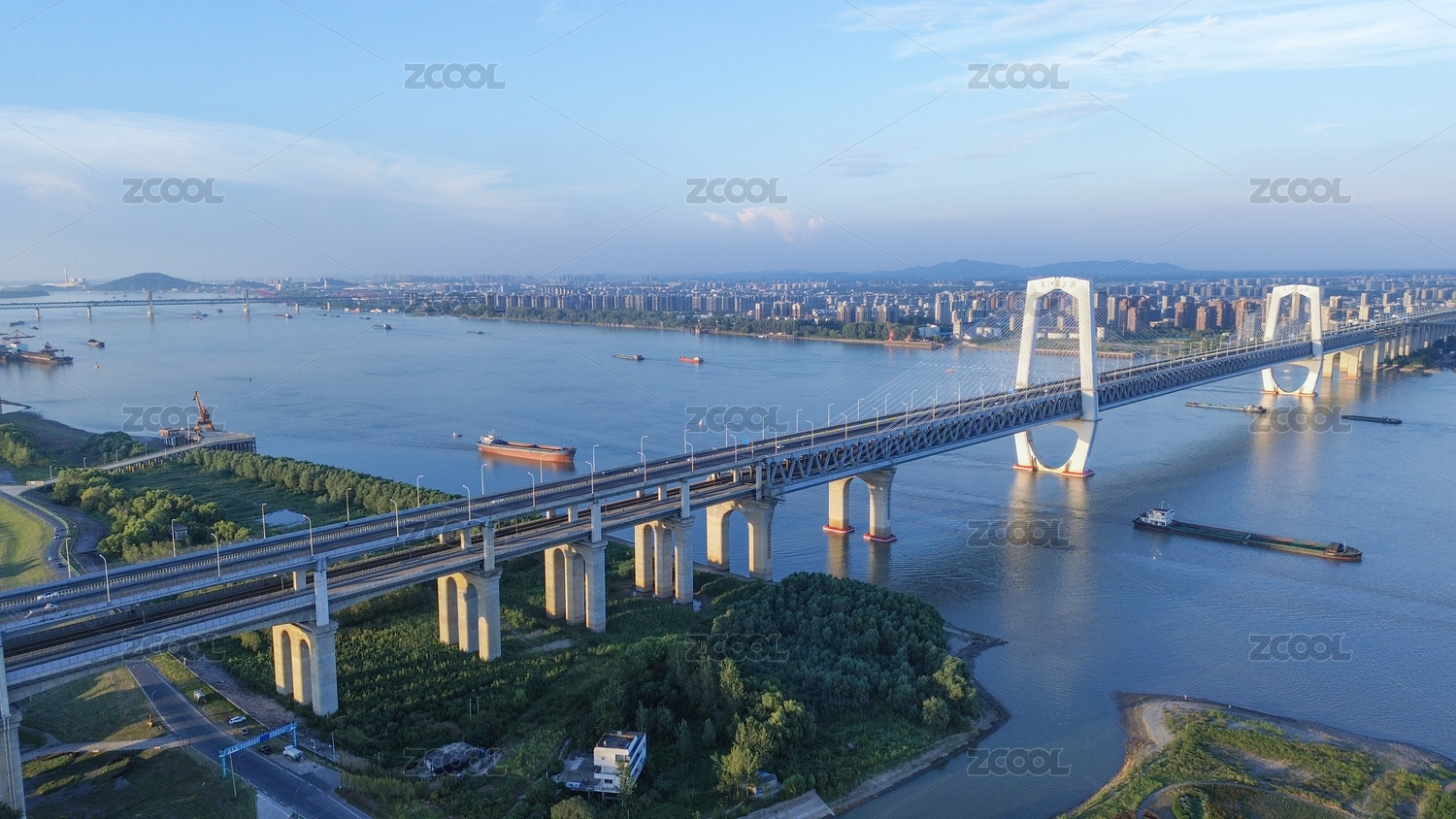 安徽芜湖长江三桥航拍鸟瞰高视角城市天际线