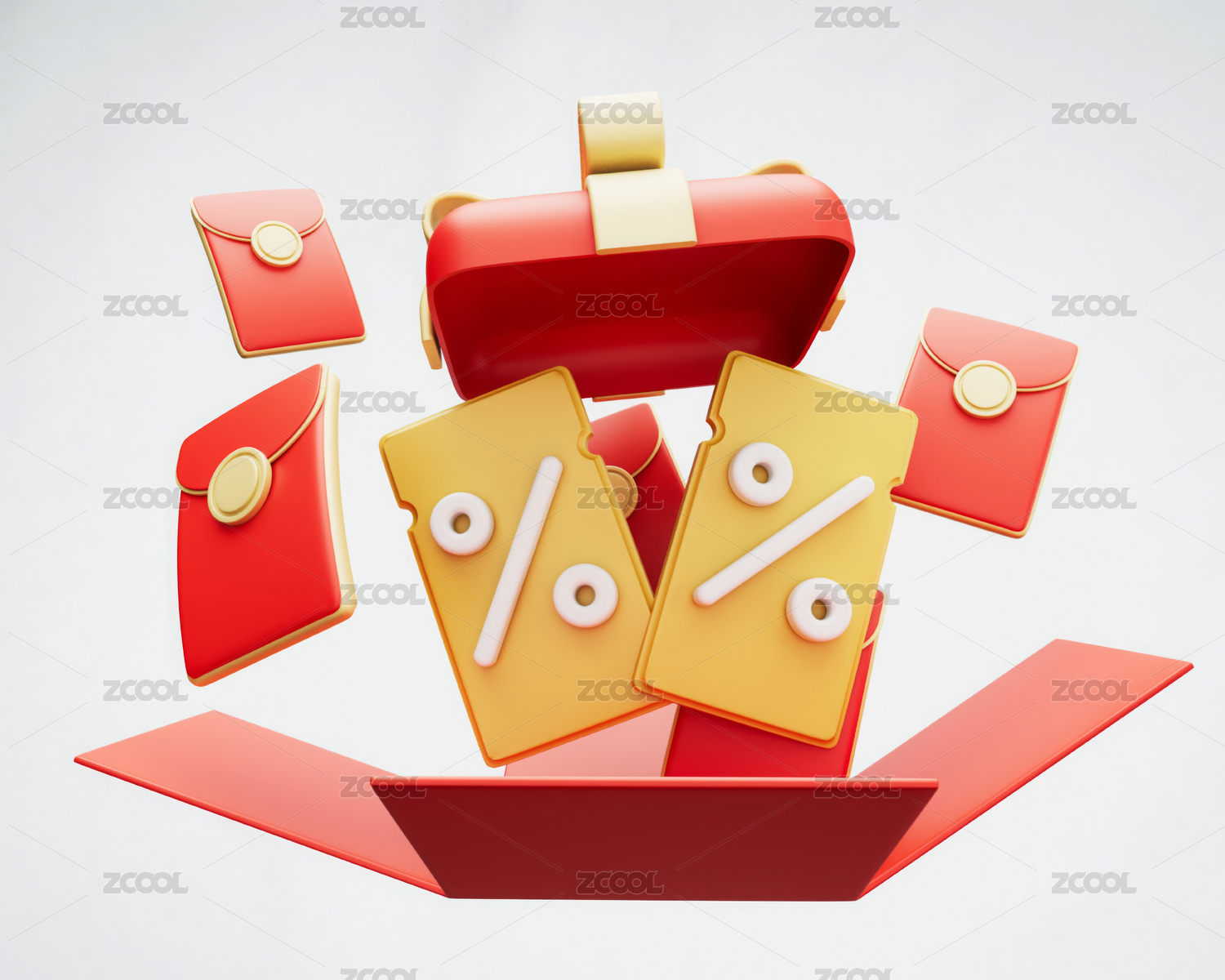 3D百分比优惠券插画