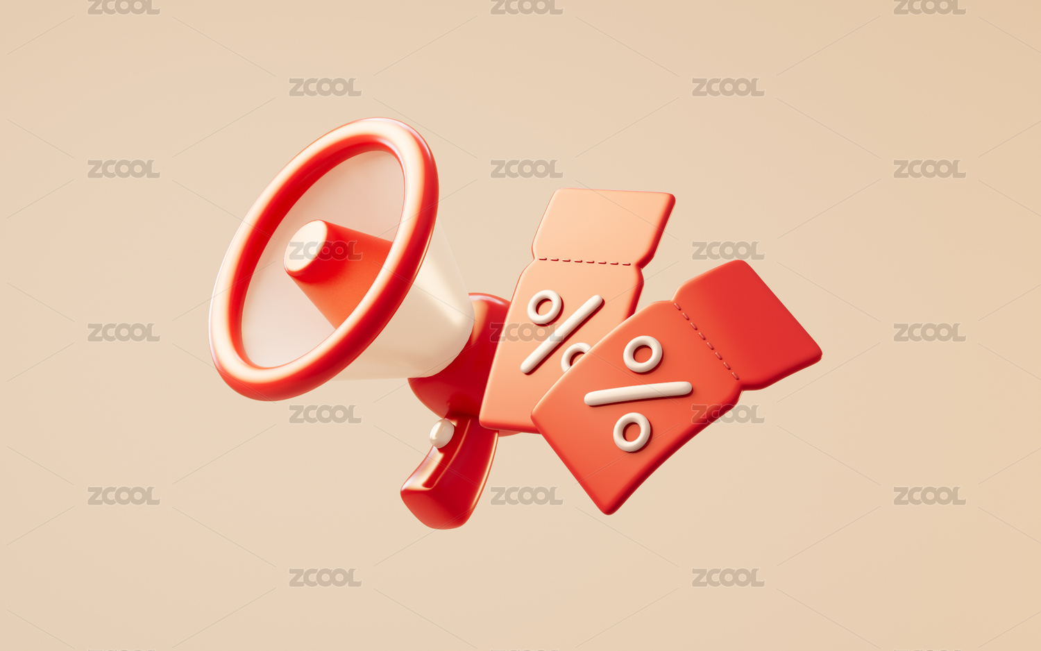 小喇叭与折扣券3D渲染