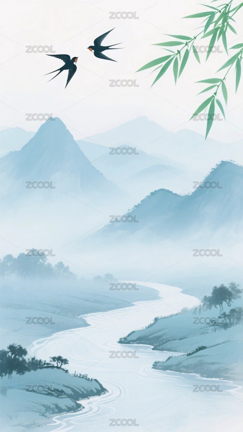 中国风春分抽象艺术柳树泼墨晕染诗意水墨画