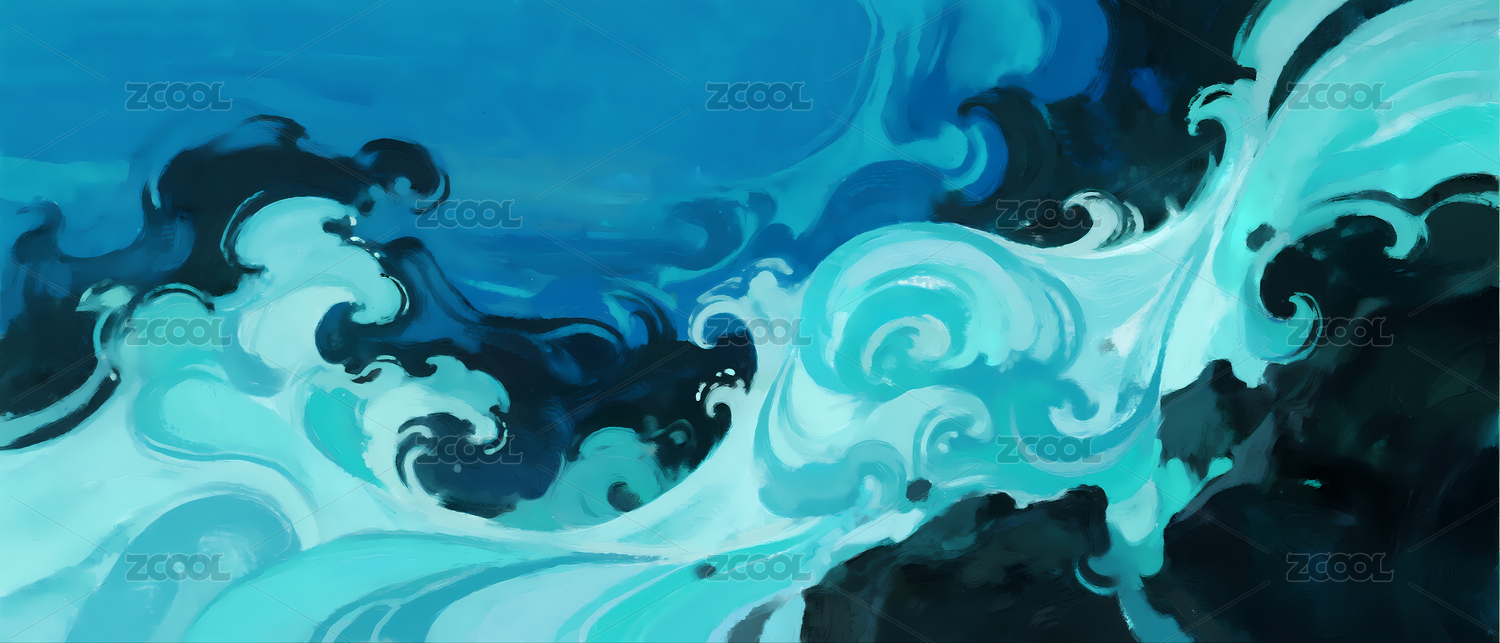 蓝色海洋波浪的艺术描绘