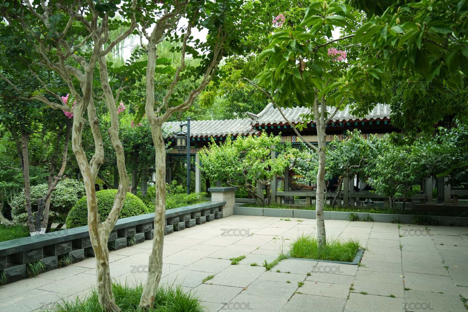 阴天古建筑满园绿植