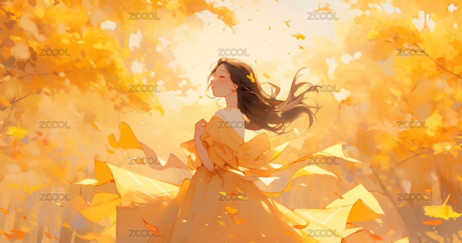 插画,秋天,AIGC202402,美,庆祝,立秋,二十四节气,人,女人,生活方式