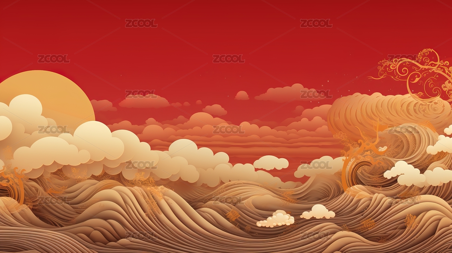 AI数字艺术,插画,背景,抽象,装饰,壁纸,庆祝,设计,红色,中国文化