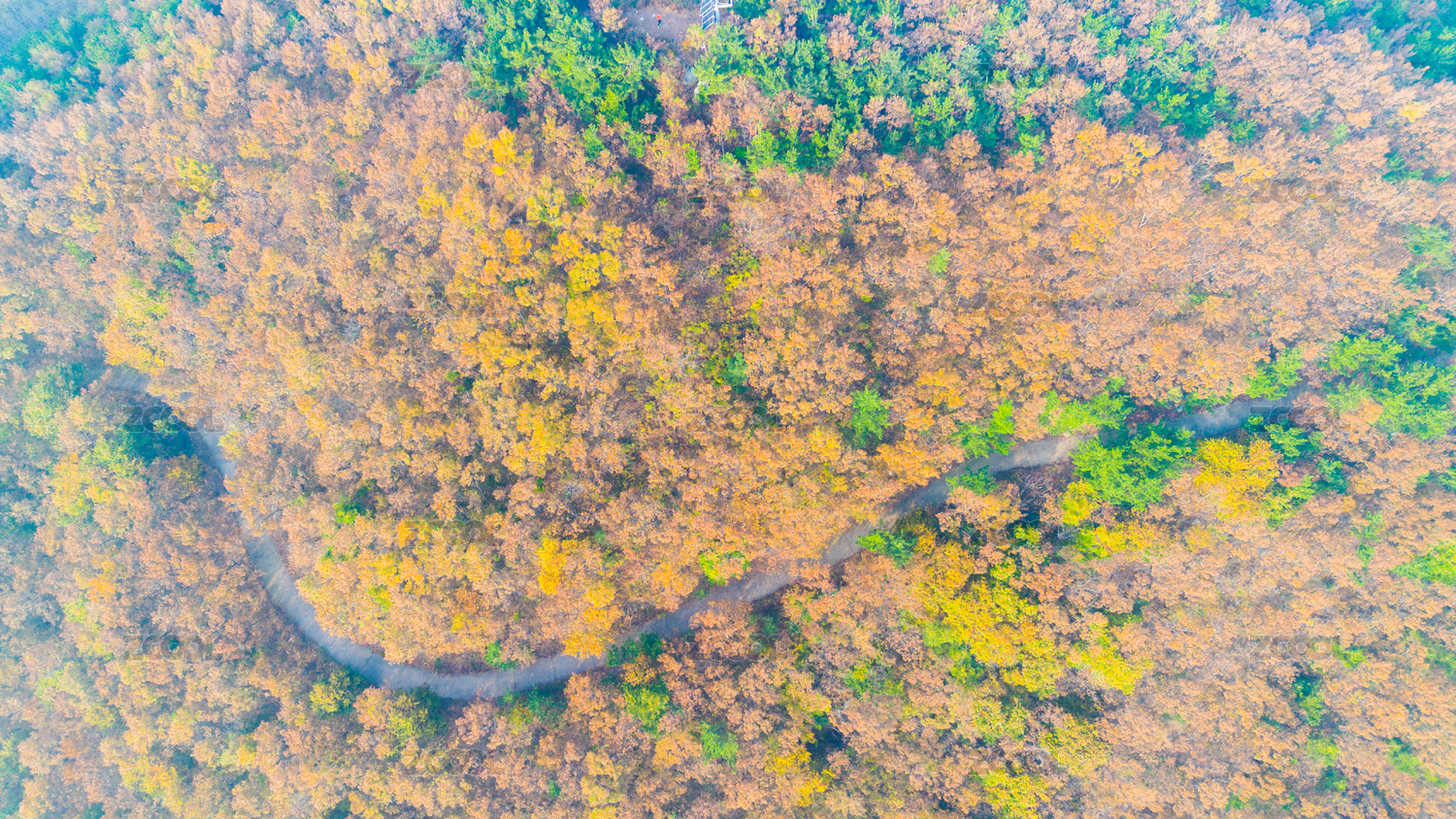 秋季傍晚航拍安徽休宁齐云山景区香炉峰金亭
