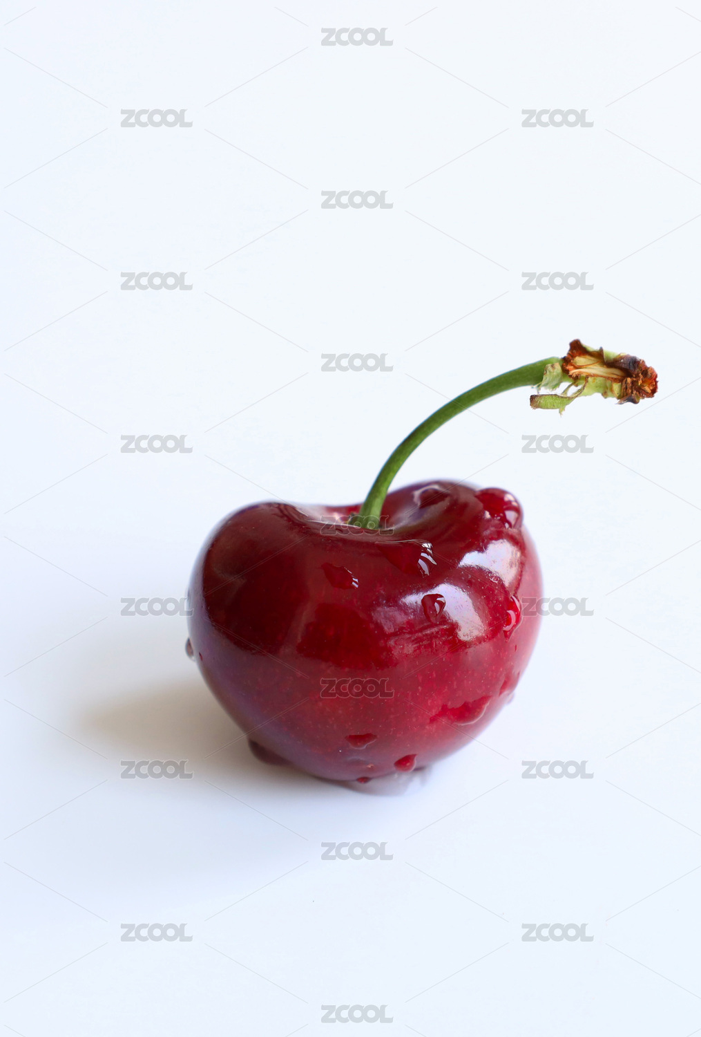 特写一颗饱满新鲜的樱桃,在深色质感的背景里