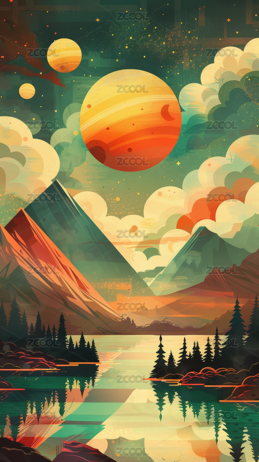 宇宙中的星球插画