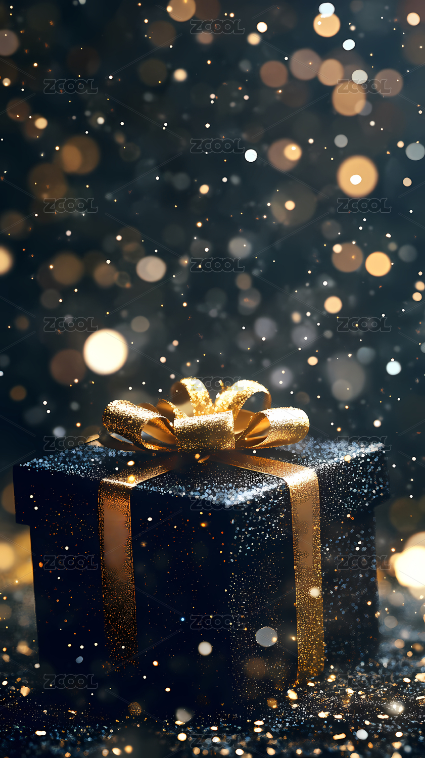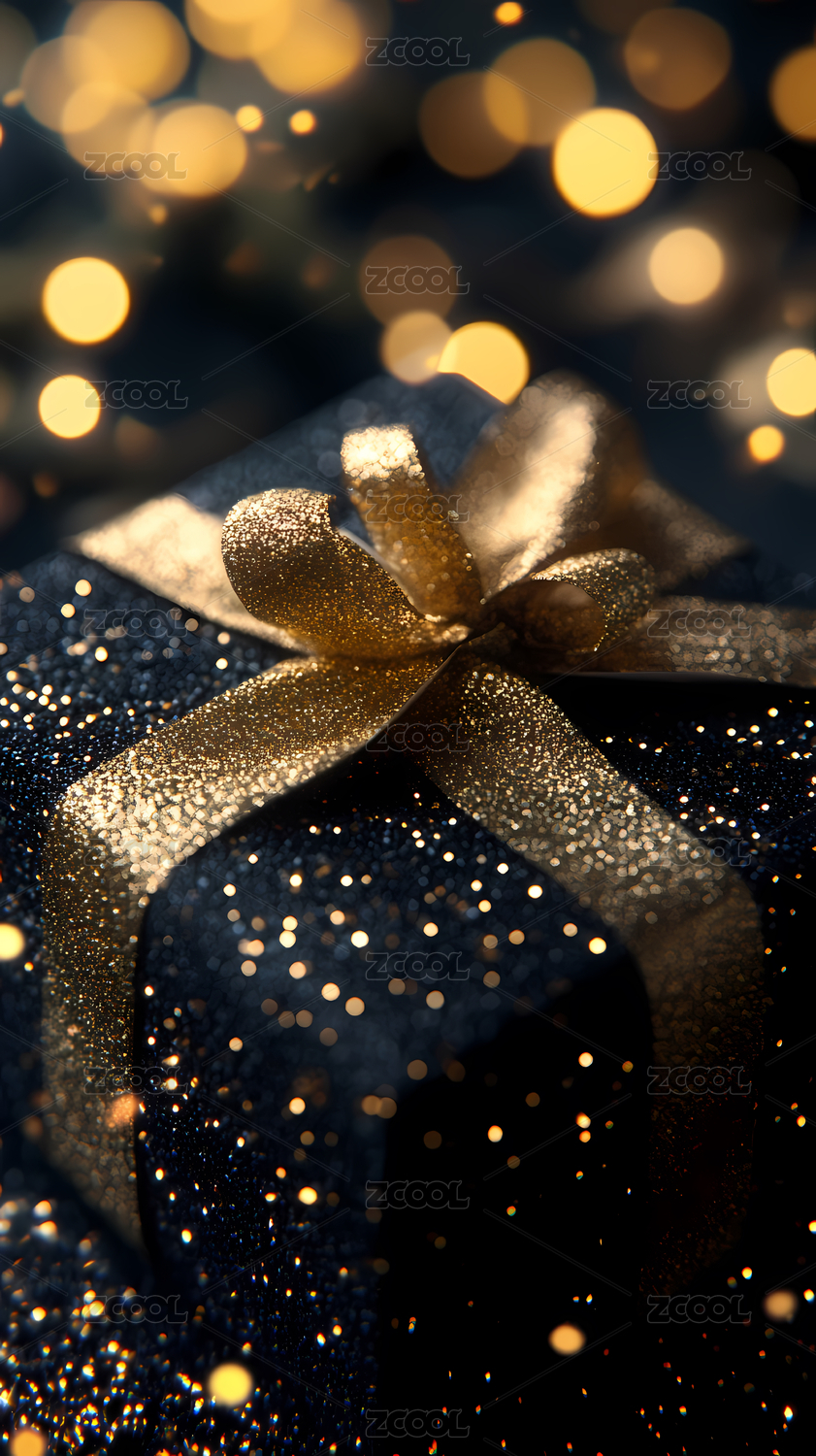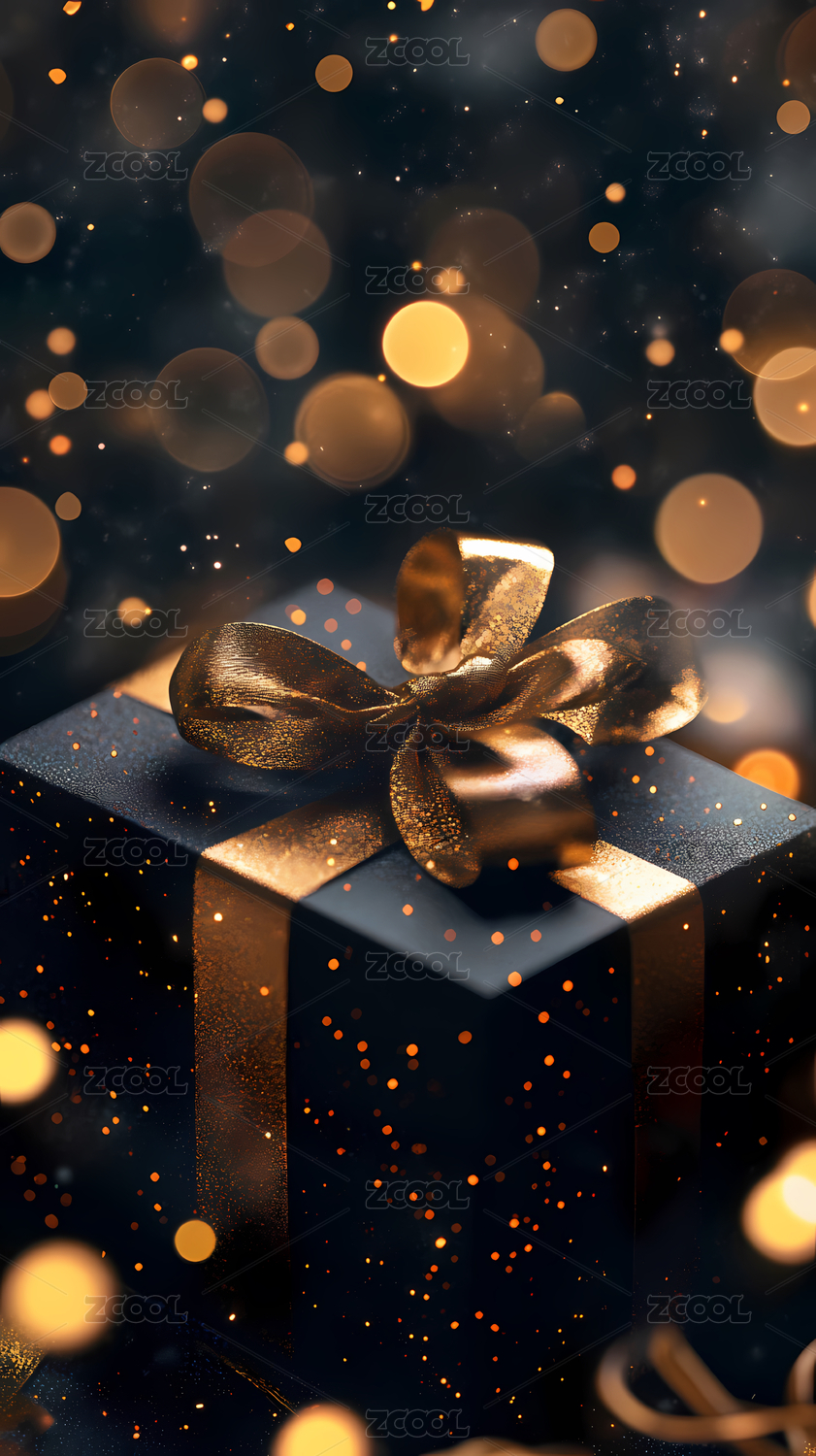 黑色礼盒与金色丝带,奢华闪耀的节日气氛