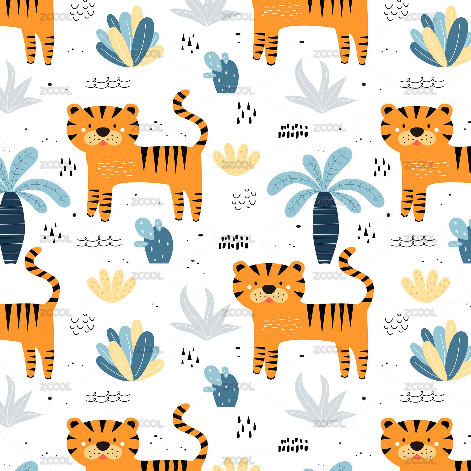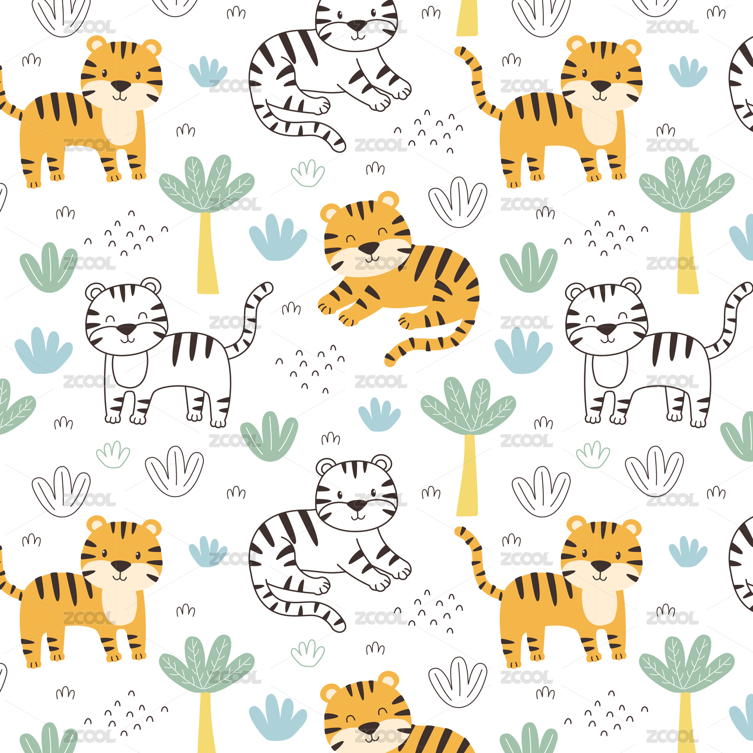 卡通手绘循环老虎图案