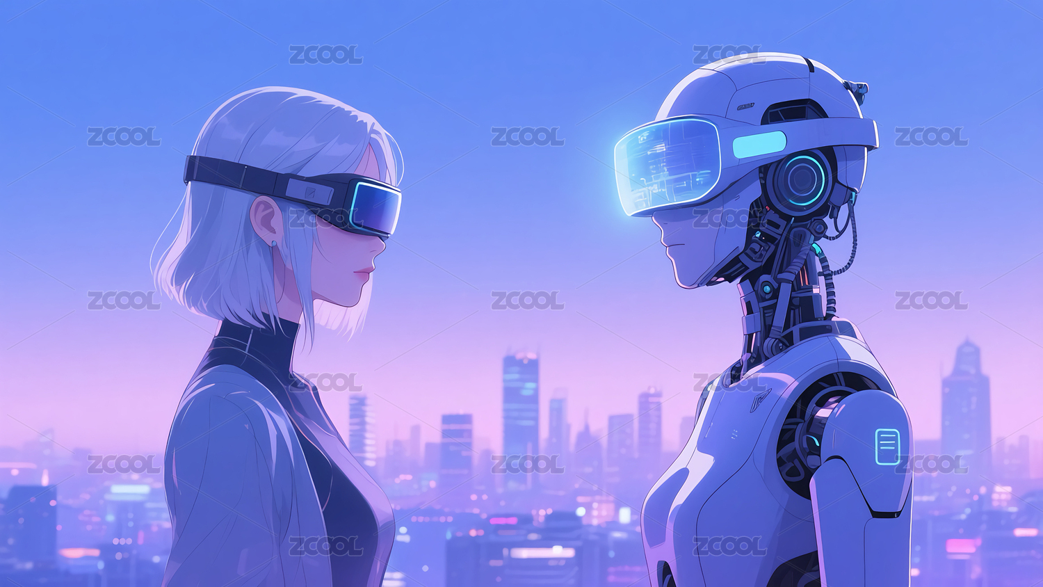 蓝底女青年穿着发光金属铠甲3D立体插画
