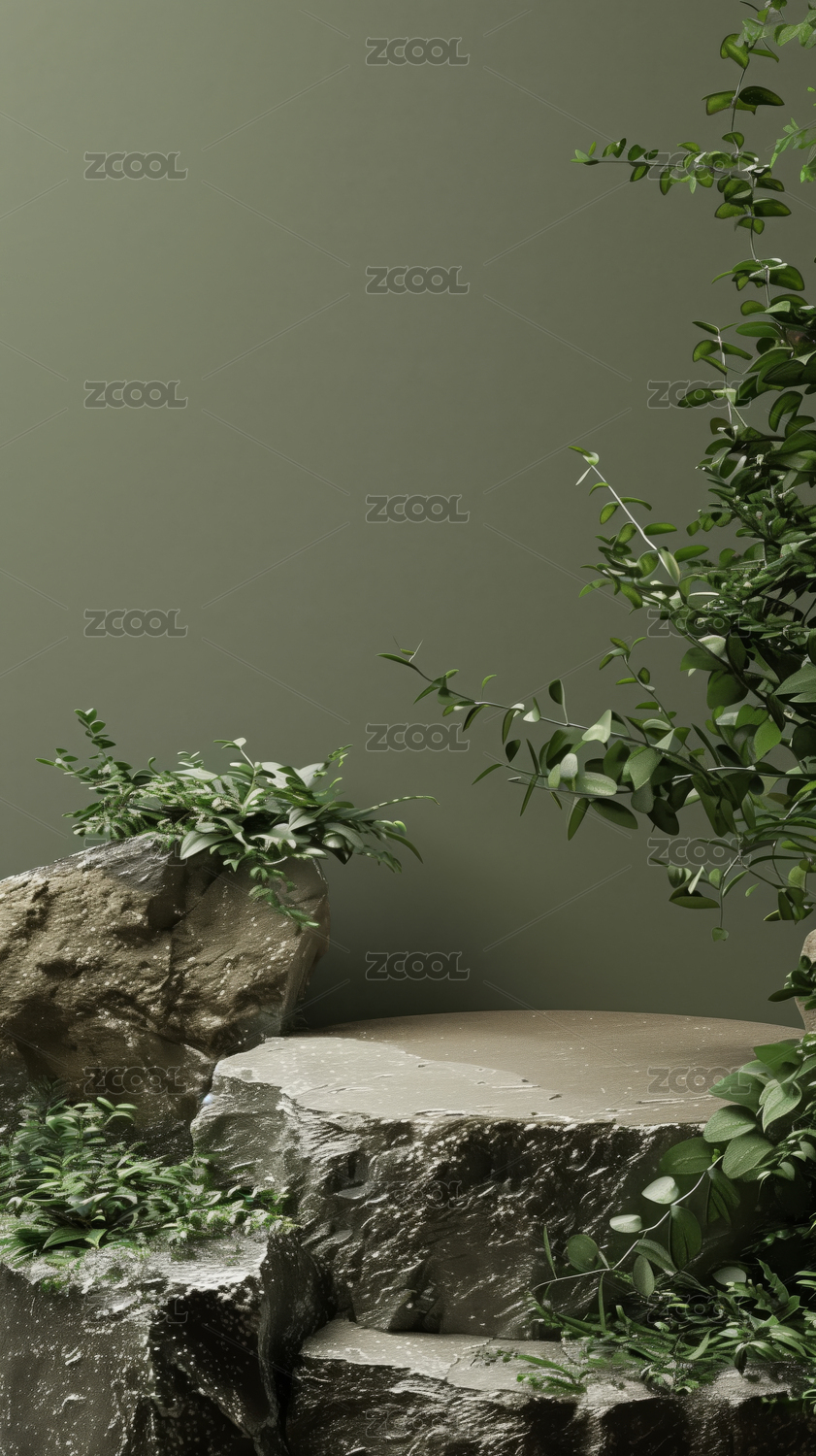 3D绿色植物现代简约风岩石电商产品展台