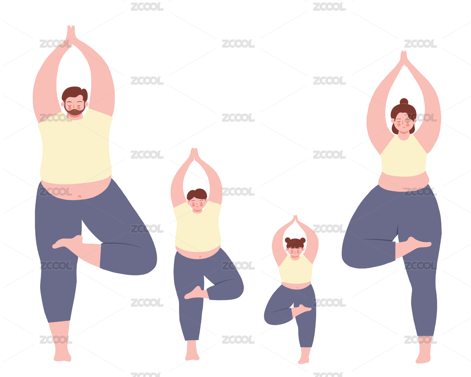 肥胖二胎家庭减肥瑜伽卡通人物造型元素