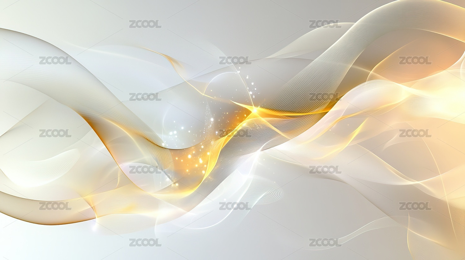 金色线条与白色波浪的抽象背景