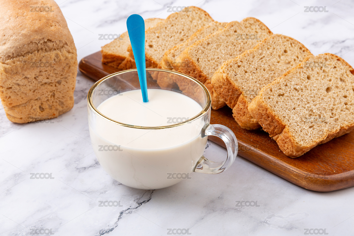 一杯早餐奶和列巴面包片