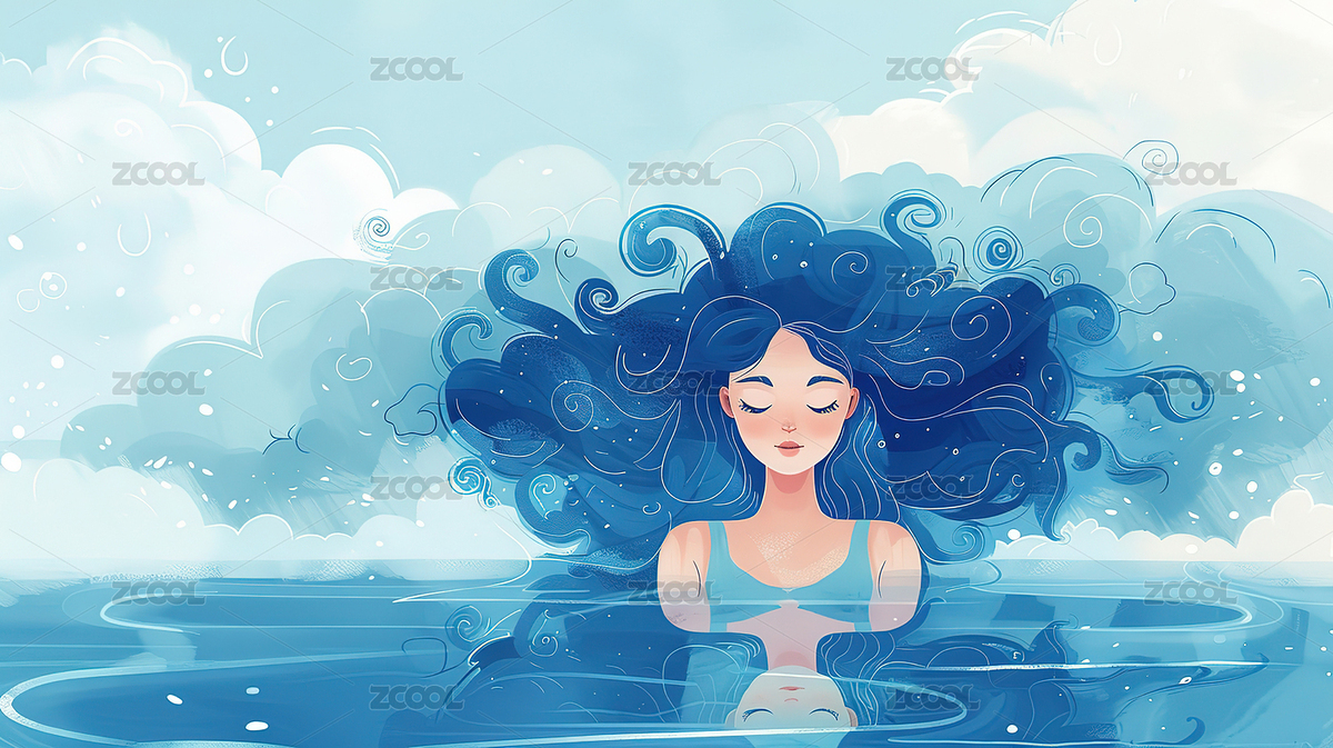 唯美的抽象艺术感螺旋的夜空下的女孩