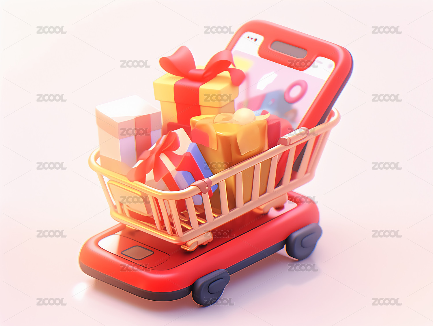 手机,购物车,背景,礼物,购物,商品,黄色,电商