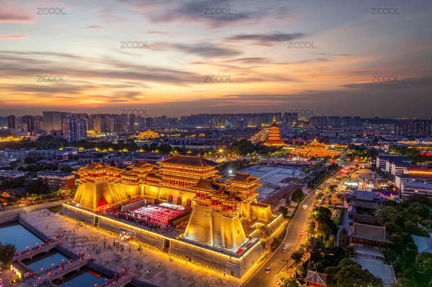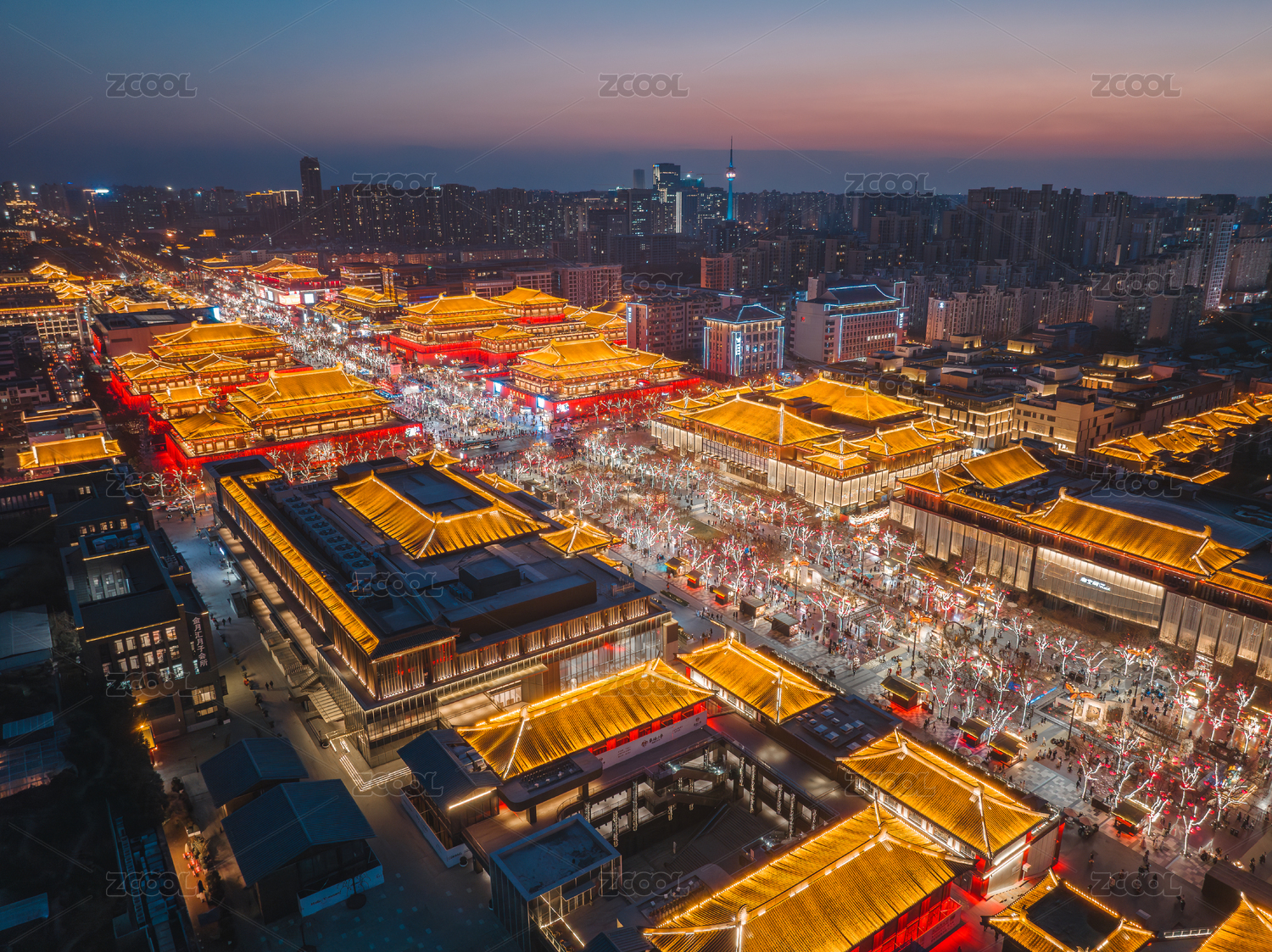 中国,陕西,西安,大雁塔,鸟瞰,航拍,夜景,景区,风景