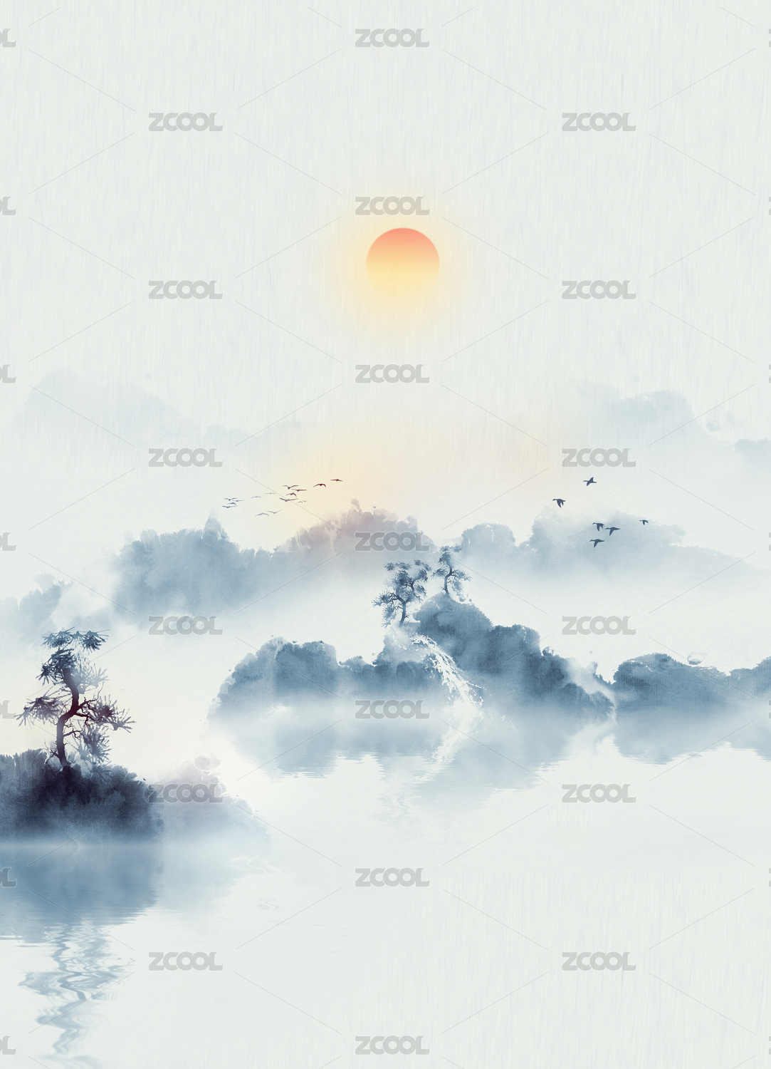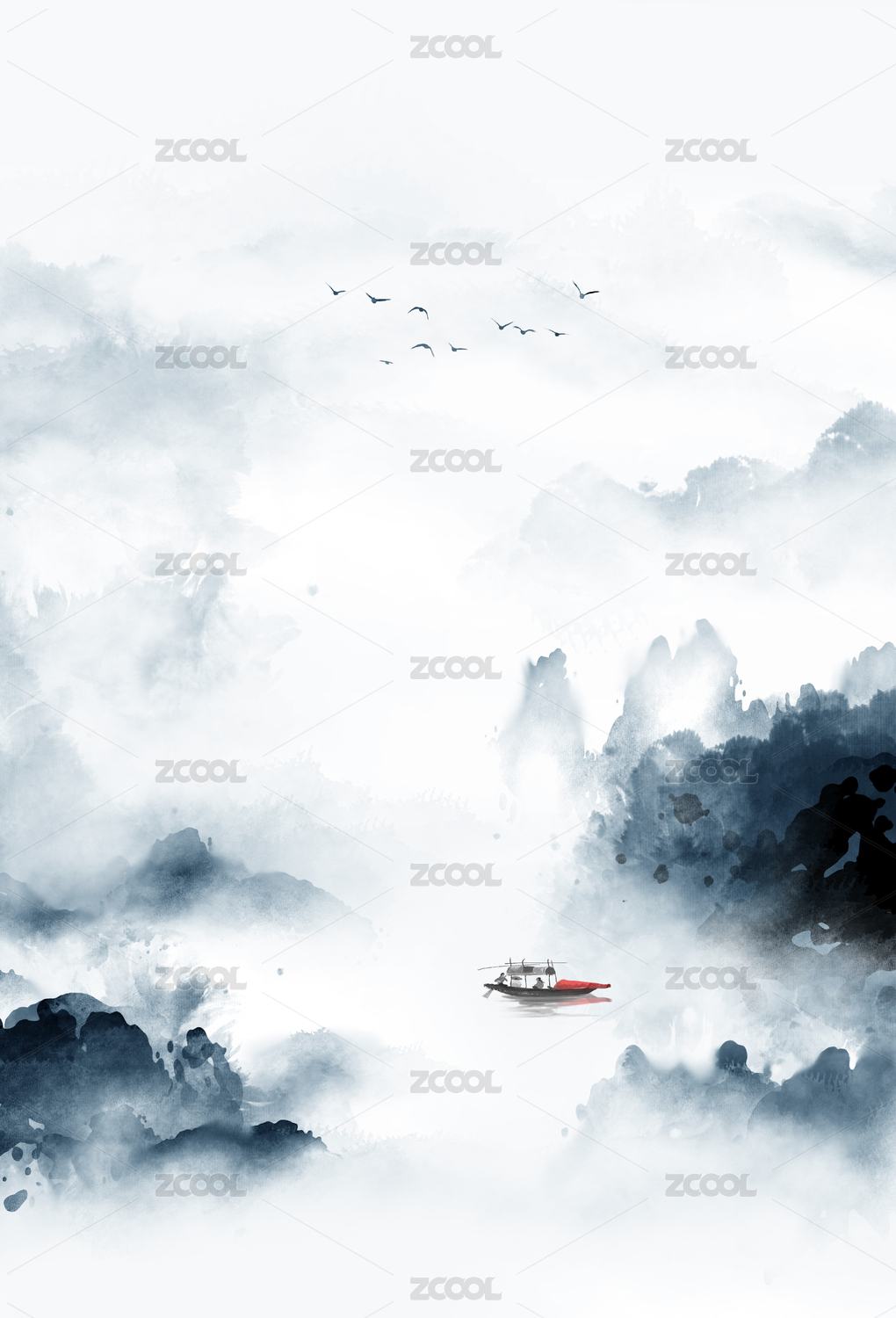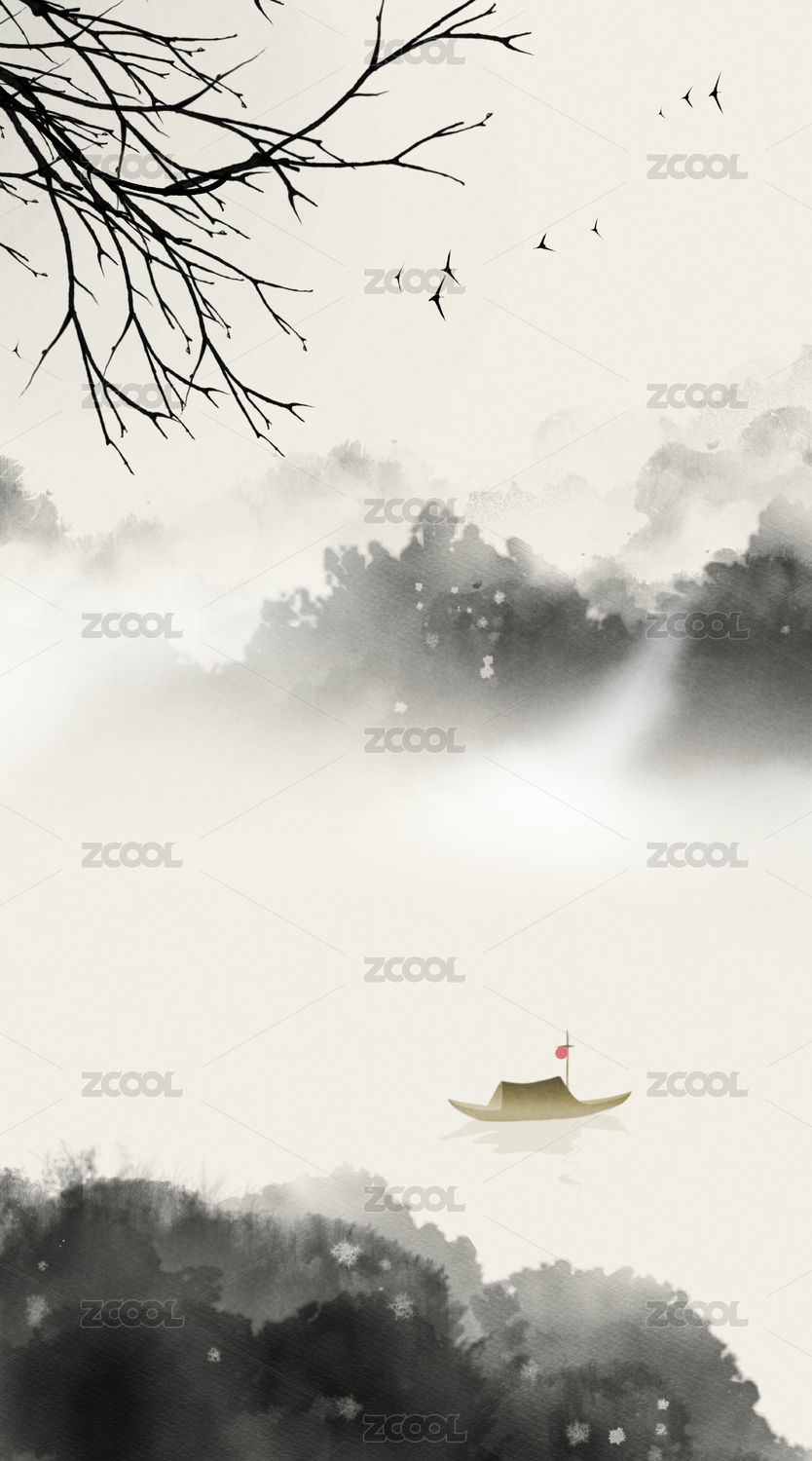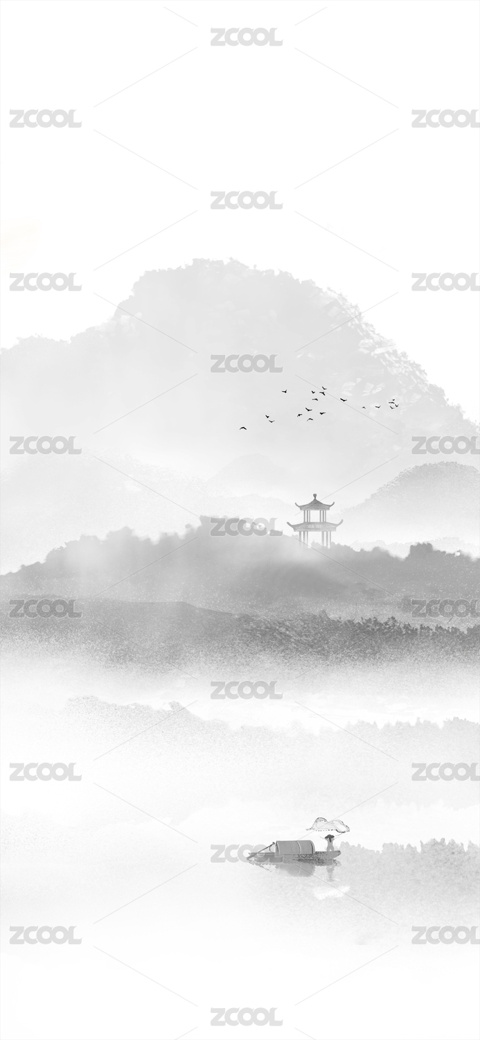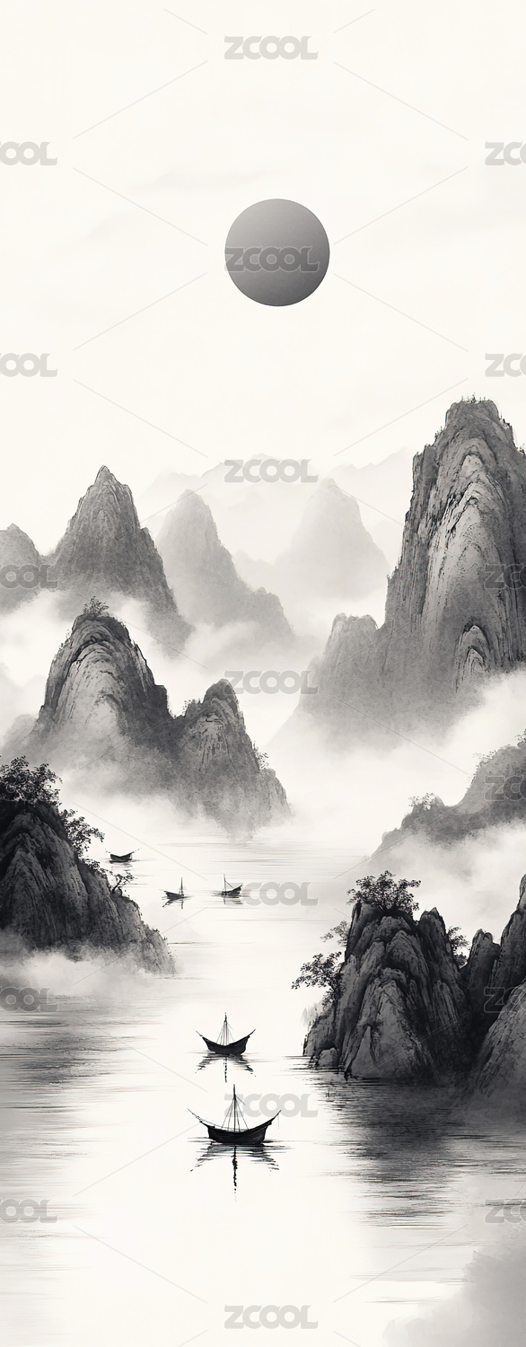 中国风,水墨,山水画,新中式,山水,黑白,背景,装饰画,插画,艺术