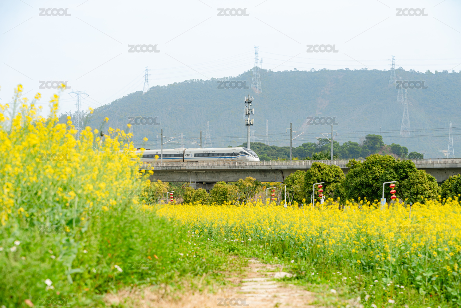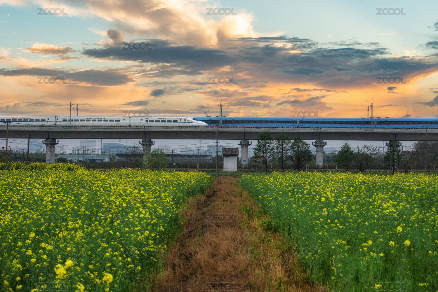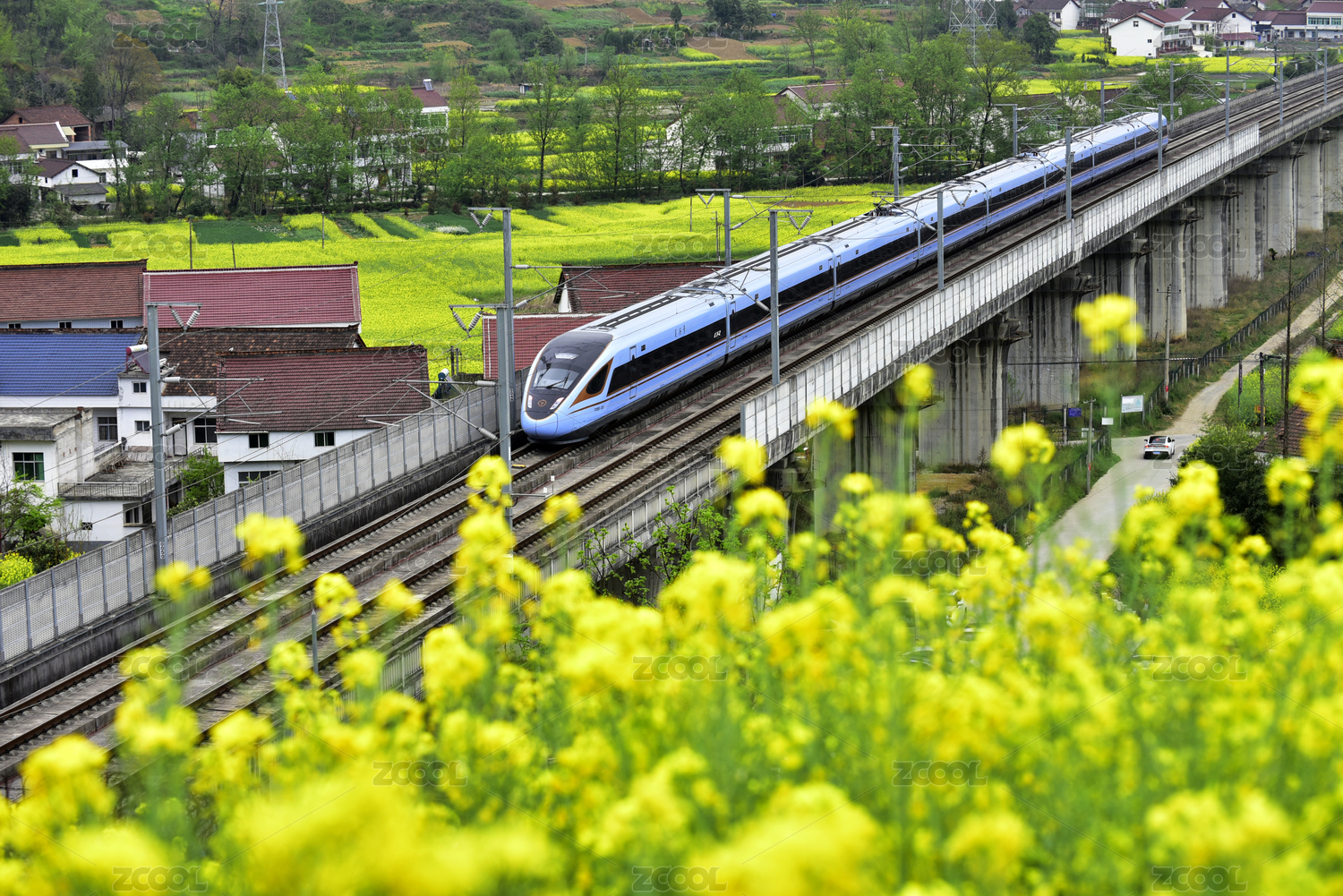 穿过油菜花的高铁