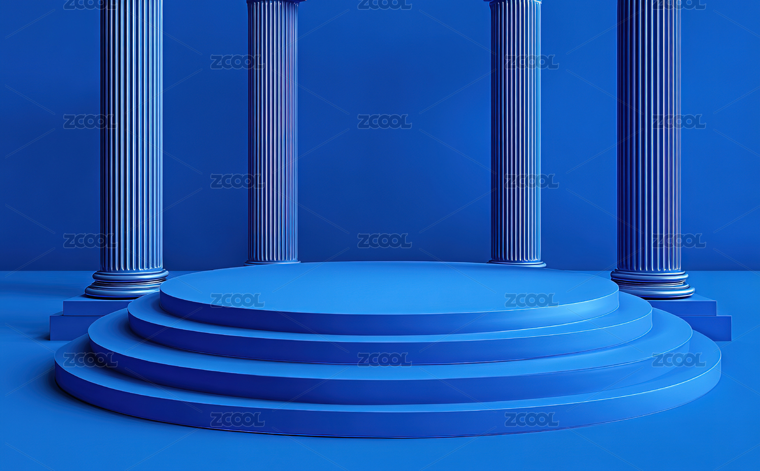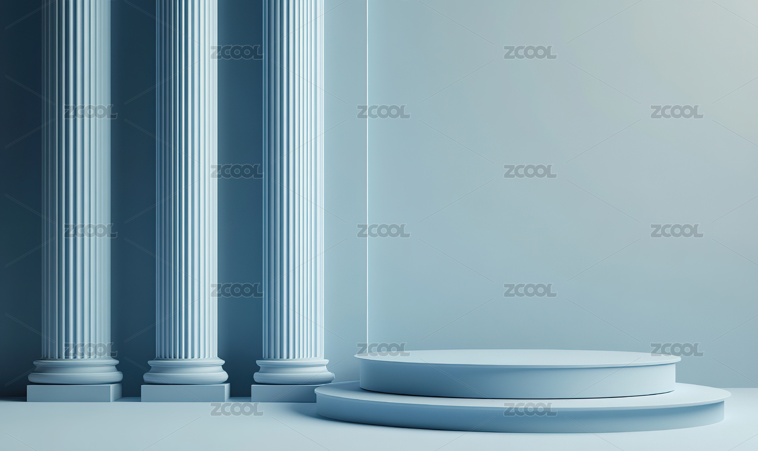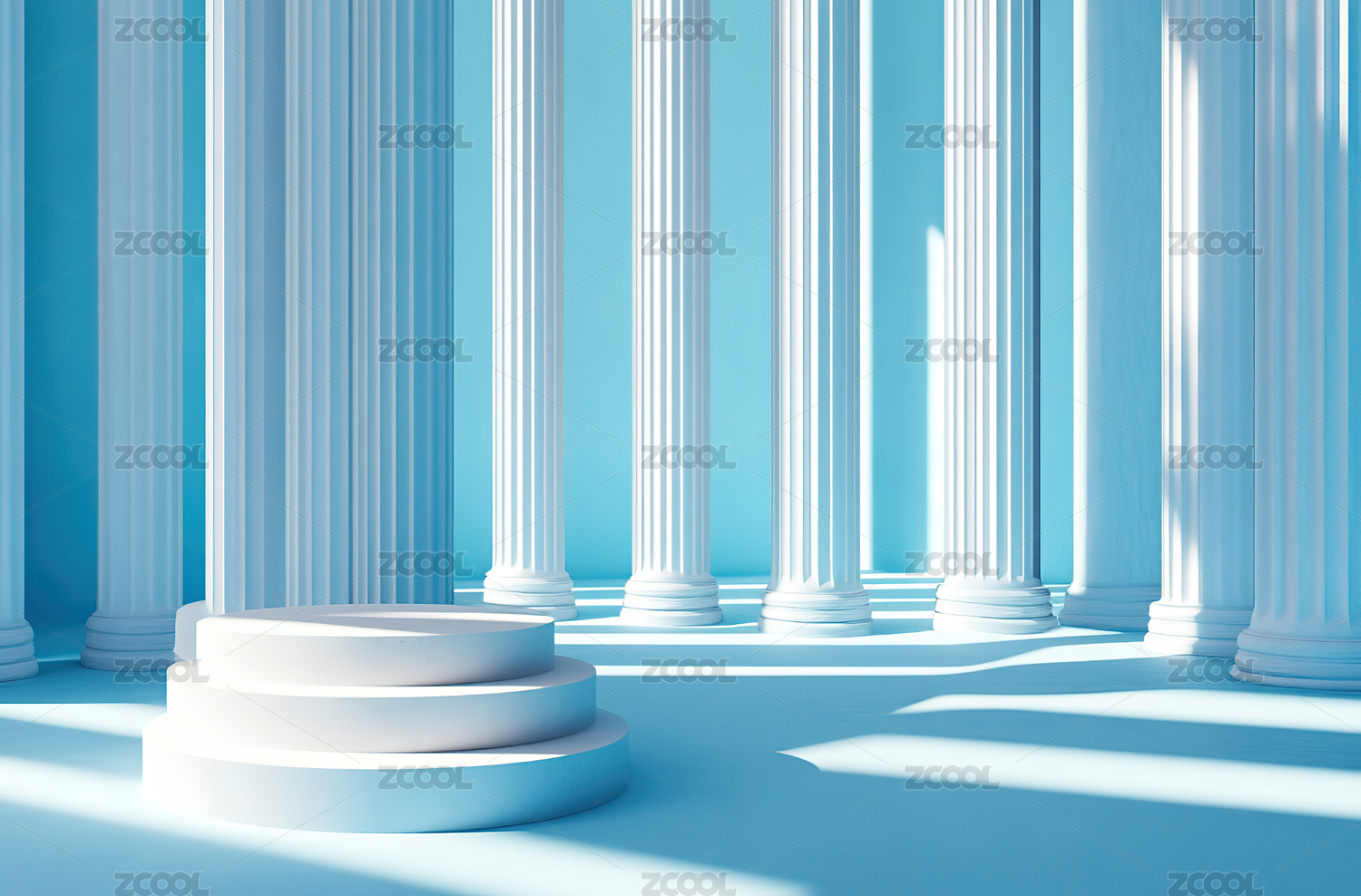 蓝色圆形舞台与白色柱子