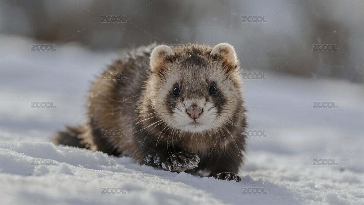 雪地里的可爱雪貂