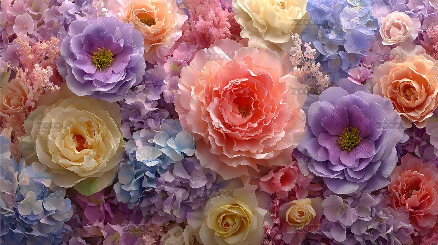 粉蓝水彩玫瑰花浪漫温柔梦幻朦胧背景壁纸