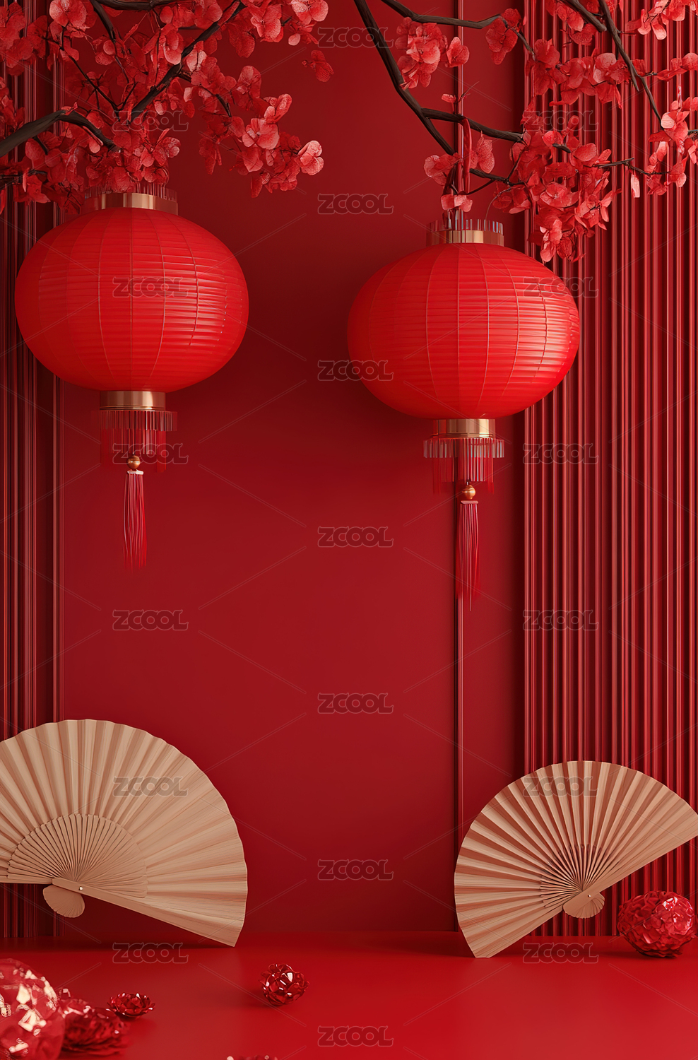 红色背景下的红色灯笼